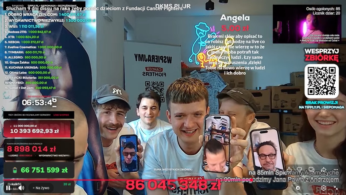 To wydarzenie przejdzie do historii polskiego internetu. W ciągu zaledwie kilku dni oddolna inicjatywa, która zaczęła się od jednego utworu, przerodziła się w potężną falę solidarności i pomocy. Efekt jest imponujący - ponad 100 milionów złotych zebranych na leczenie dzieci chorych na raka. wiecej...