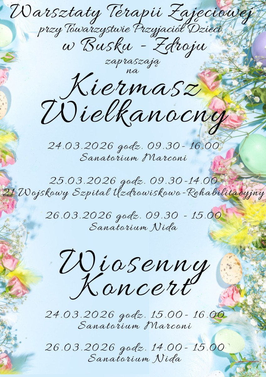 Już od dziś uczestnicy oraz kadra Warsztatów Terapii Zajęciowej w Busku-Zdroju zapraszają mieszkańców oraz kuracjuszy na Kiermasze Wielkanocne, które w najbliższych dniach odbędą się w kilku miejscach na terenie miasta.
