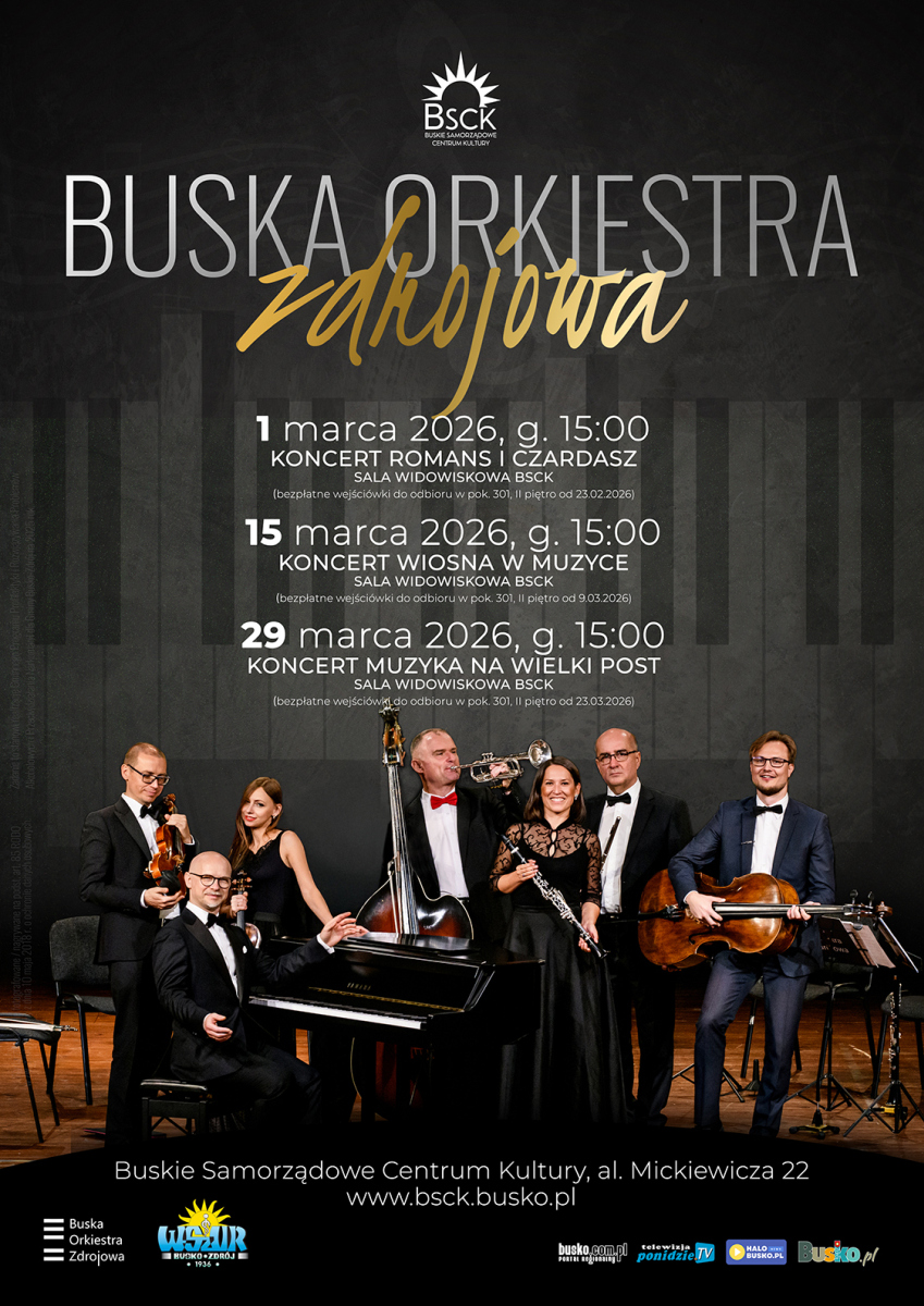 Buska Orkiestra Zdrojowa pod kierownictwem artystycznym Pawła Korepty zaprasza melomanów na trzy marcowe koncerty, które odbędą się w sali widowiskowej Buskiego Samorządowego Centrum Kultury.