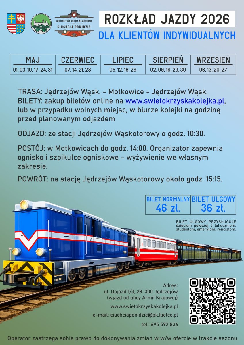 Rozkład jazdy 2026: Ciuchcia kursować będzie w terminach: