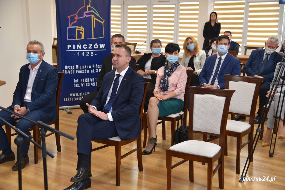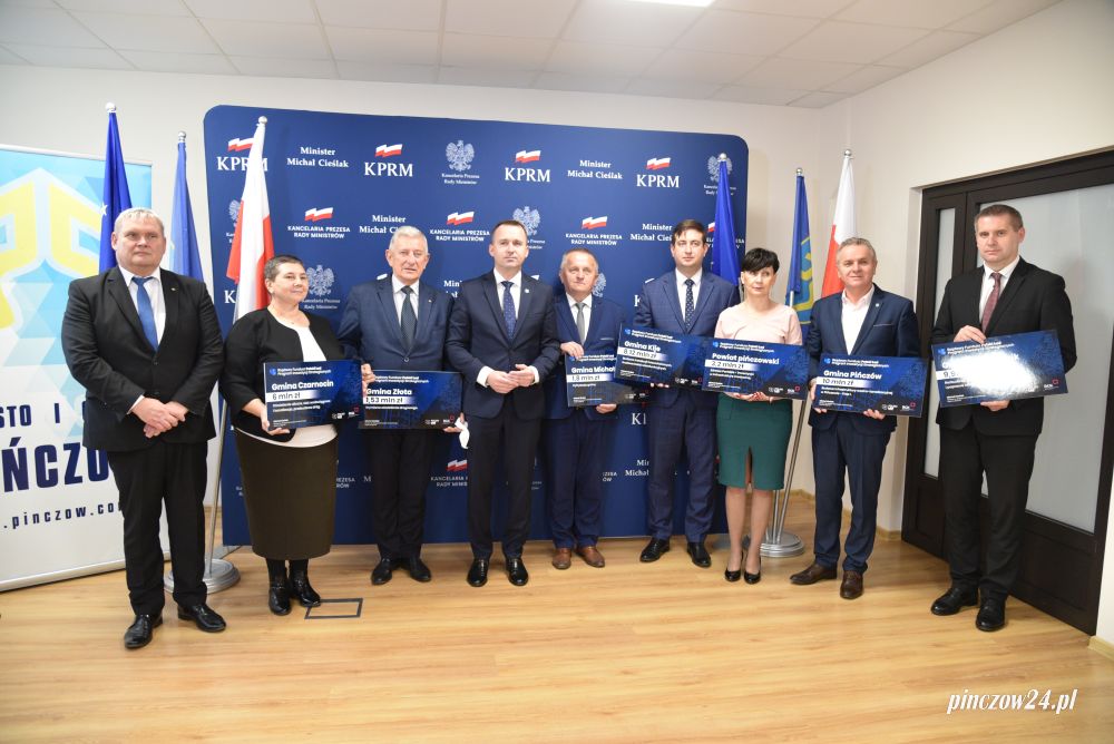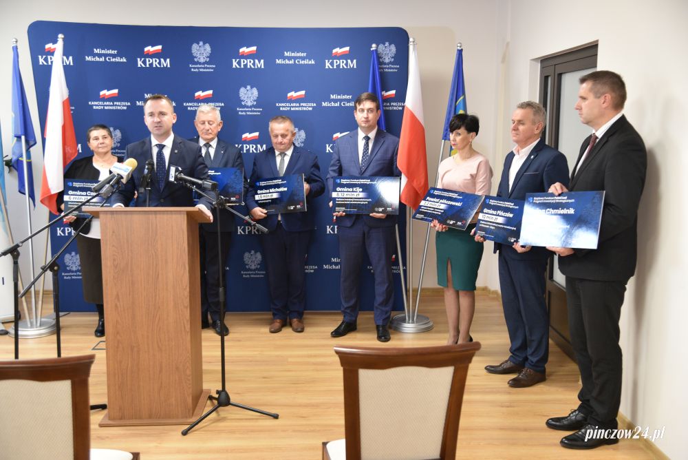 Prawie 100 milionów złotych trafi na Ponidzie. Minister Michał Cieślak podczas konferencji prasowej, zorganizowanej we wtorek, 26 października w Pińczowie przekazał samorządowcom symboliczne czeki.