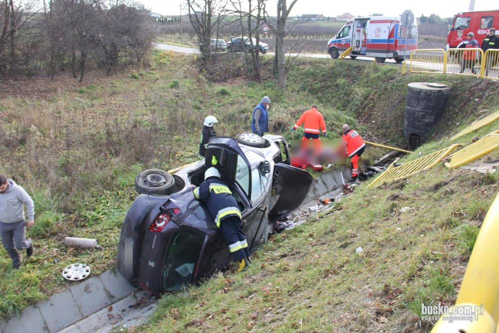 Po zderzeniu osobówka wypadła poza pas jezdni do głębokiego rowu. Kierująca osobówką została wyjęta z wraku przez załogę karetki pogotowia i strażaków z OSP Pacanów, reanimowana przez dłuższy czas do chwili przylotu śmigłowca LPR. Tu zaopatrzona przez służby medyczne przetransportowana śmigłowcem do szpitala wojewódzkiego w Kielcach.