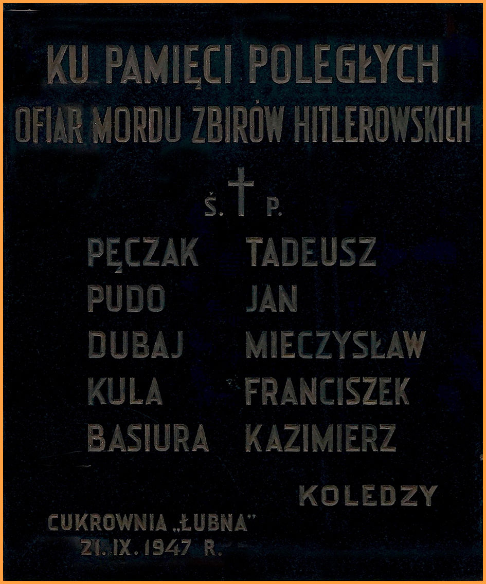 Kazimierski Ośrodek Kultury w Kazimierzy Wielkiej, poszukuje informacji o osobach, których nazwiska widnieją na zamieszczonej poniżej tablicy pamiątkowej, która dawniej znajdowała się na zewnętrznej ścianie budynku portierni przy cukrowni "Łubna" w Kazimierzy Wielkiej.