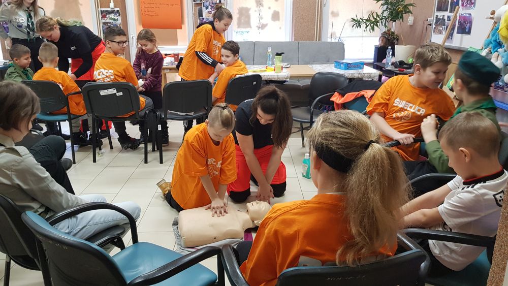 Chociaż pogoda nie zawsze sprzyjała wyjściu w teren, zarówno pierwszy jak i drugi tydzień ferii zimowych był czasem zarówno aktywnego wypoczynku jak i edukacji. Ponieważ bezpieczeństwo dzieci było dla nas priorytetem, dlatego pierwsze zajęcia przeprowadziła Harcerska Grupa Ratownicza na czele z ratownikiem medycznym phm Szymonem Wójcikiem.