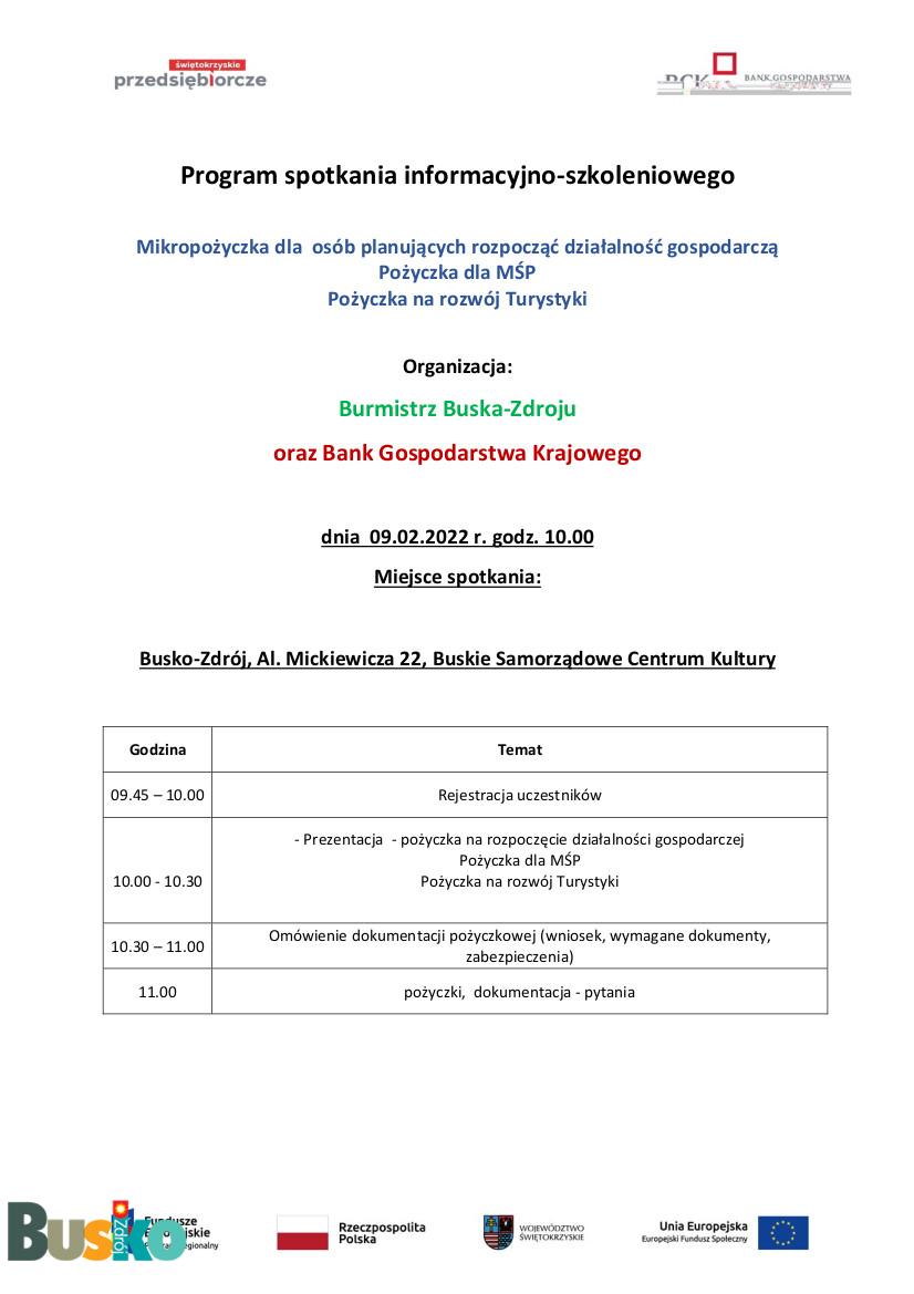 Spotkanie odbędzie się 09.02.2022 r. o godz. 10.00 w Buskim Samorządowym Centrum Kultury, al. Mickiewicza 22, 28-100 Busko-Zdrój.