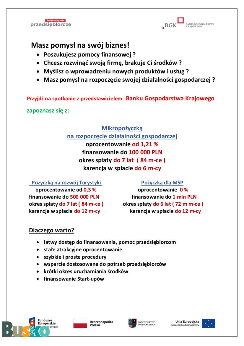 Masz pomysł na swój biznes? Myślisz o rozpoczęciu działalności gospodarczej, brakuje Ci środków? Zapraszamy na spotkanie informacyjno-szkoleniowe dotyczące wsparcia, rozpoczęcia działalności gospodarczej oraz pożyczek dla MŚP.