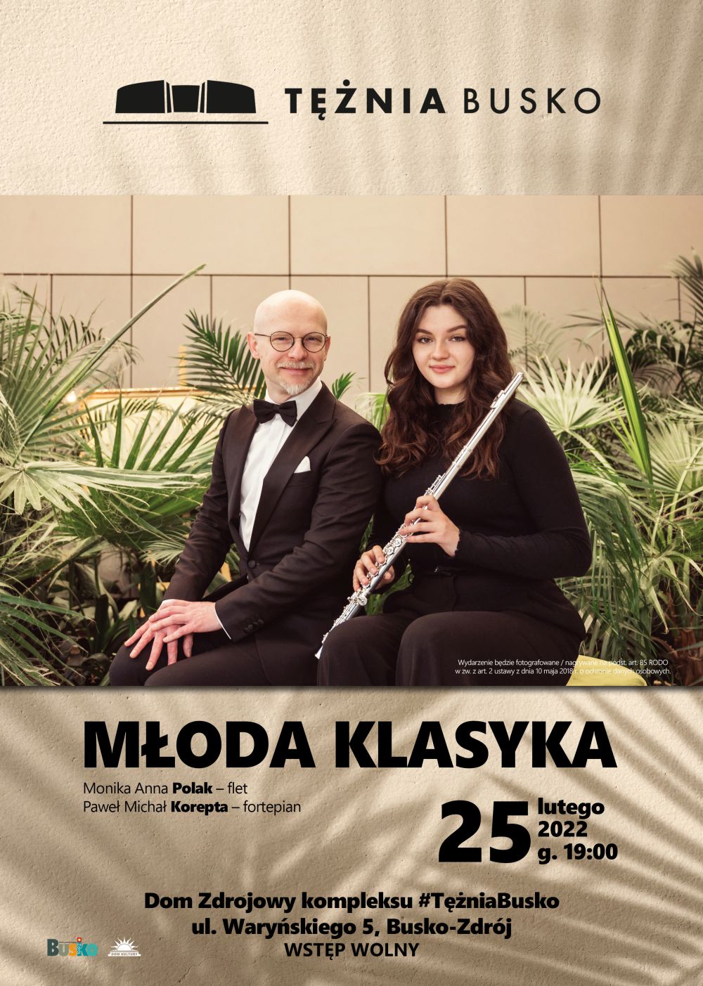 W pi±tek, 25 lutego o godz. 19:00 zapraszamy do Domu Zdrojowego przy buskiej Tê¿ni. Z koncertem "M³oda Klasyka" wyst±pi±: Monika Polak - flet i Pawe³ Korepta - fortepian.