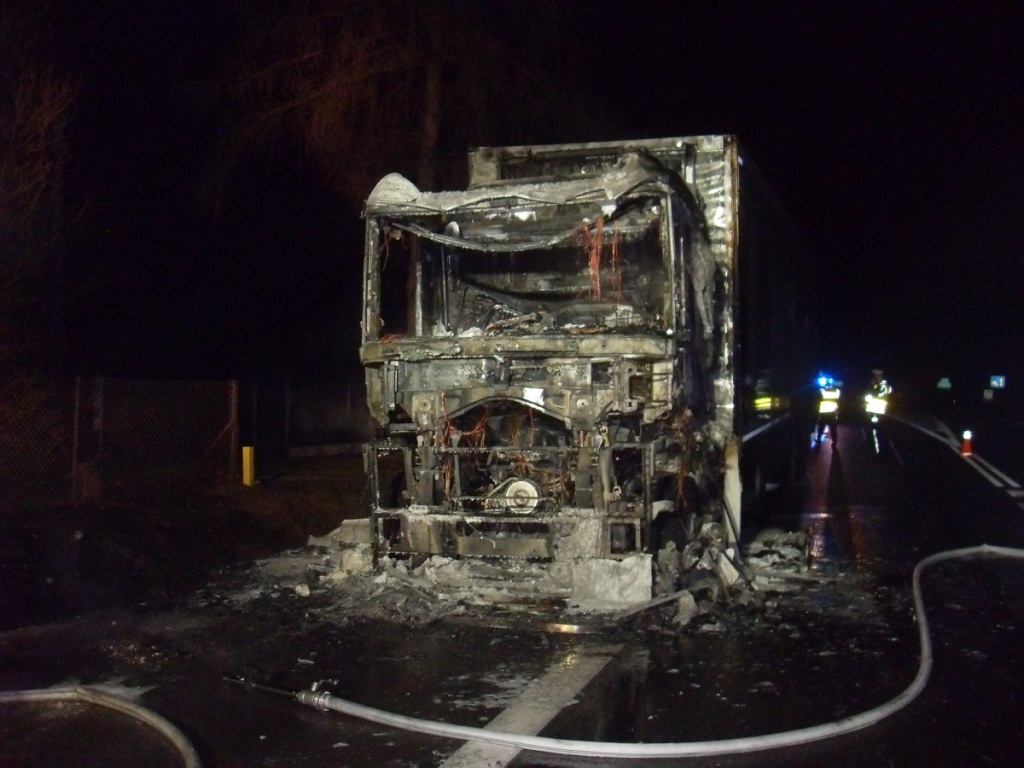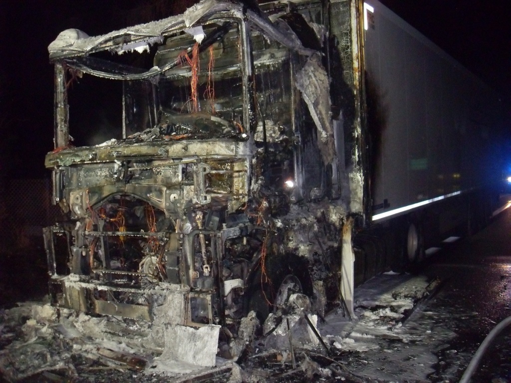 W czwartek, 10 lutego 2022 roku po godz. 18:00 Straż Pożarna w Busku-Zdroju otrzymała zgłoszenie o pożarze ciągnika siodłowego z naczepą typu chłodnia, na drodze krajowej DK73 w miejscowości Szczeglin, gmina Stopnica.