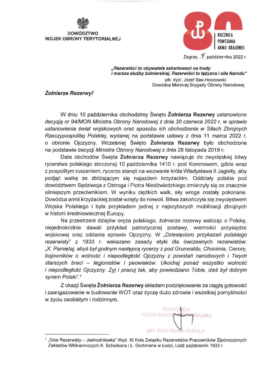 Z okazji przypadającego dzisiaj Święta Żołnierzy Rezerwy – wszystkim rezerwistom życzymy wszystkiego najlepszego i żołnierskiego szczęścia.