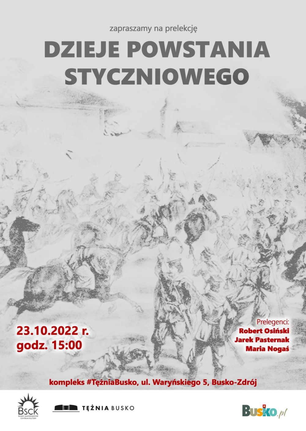 Zapraszamy 23 października o godz.15:00 do Domu Zdrojowego na prelekcje o lokalnej historii. Dowiemy się od Roberta Osińskiego, Jarka Pasternaka oraz Marii Nogaś o faktach a może i o mitach dotyczących Bitwy pod Grochowiskami.