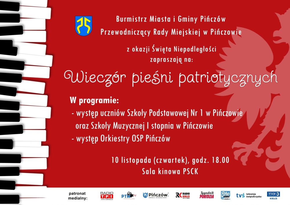 Wieczór Pieśni Patriotycznych 10 listopada w Pińczowie. Zapraszamy serdecznie.
