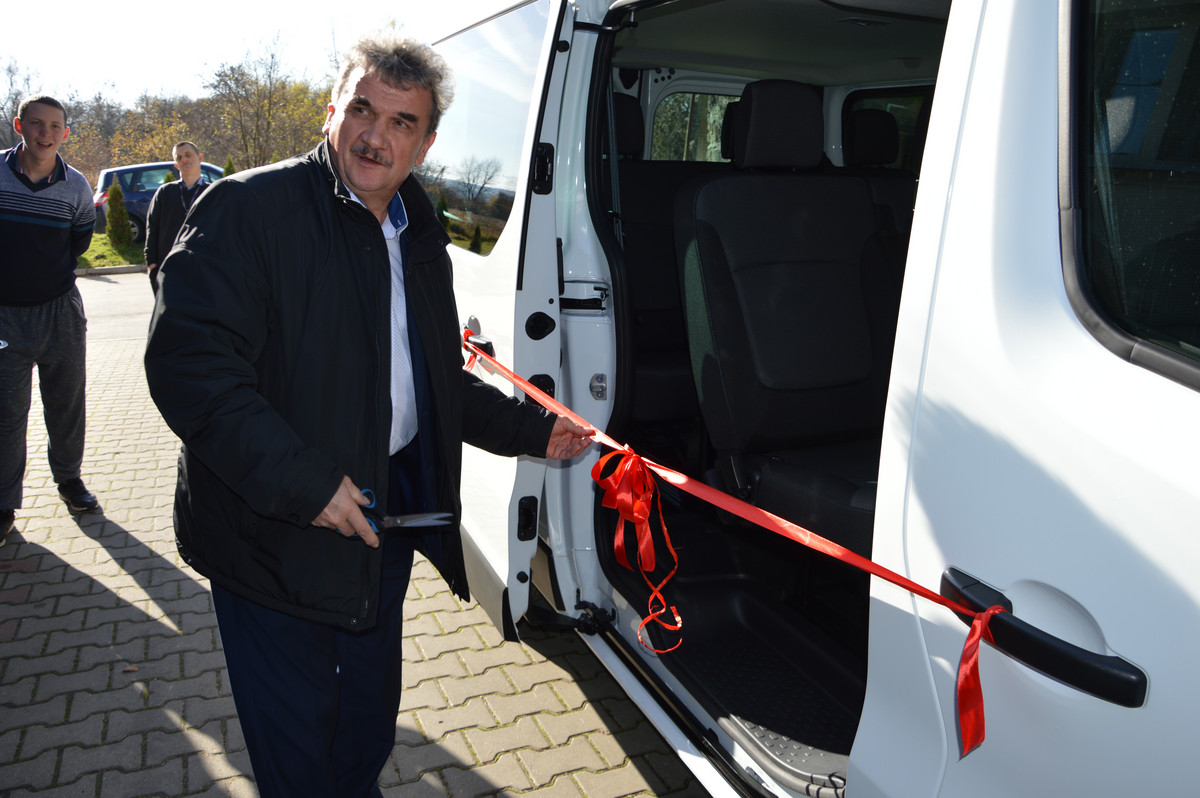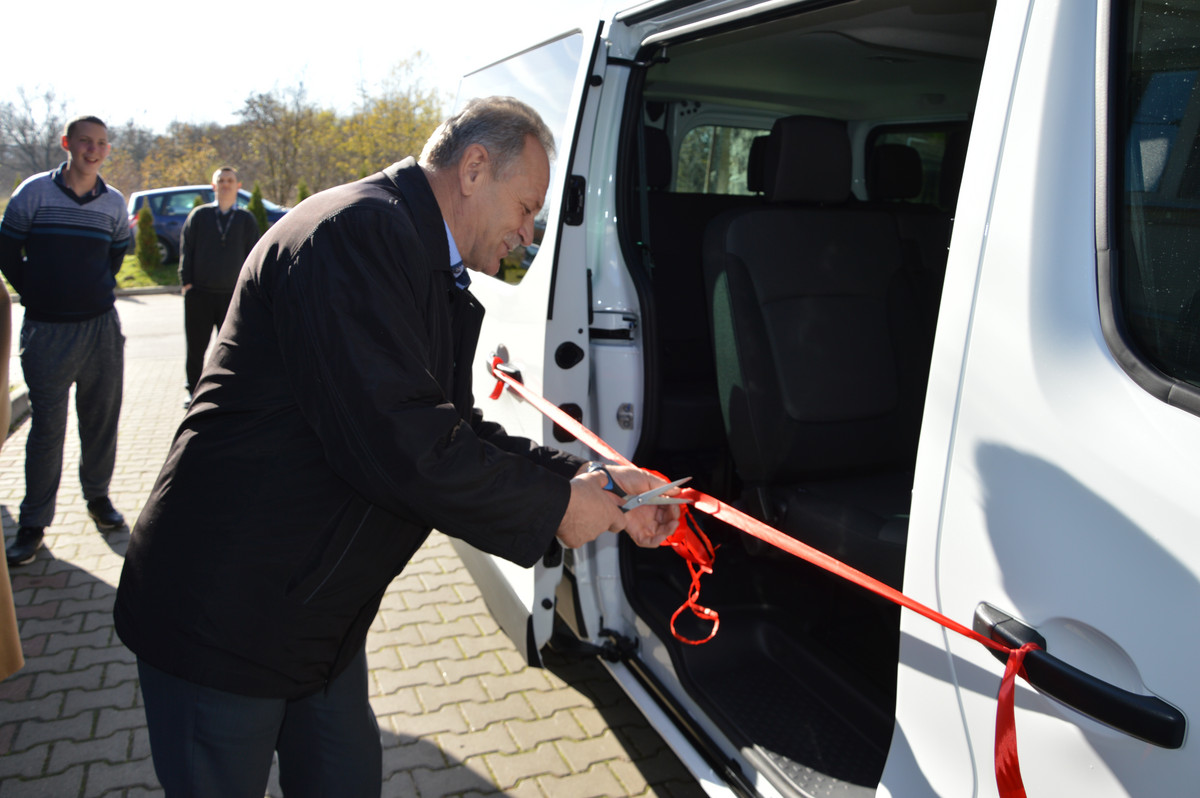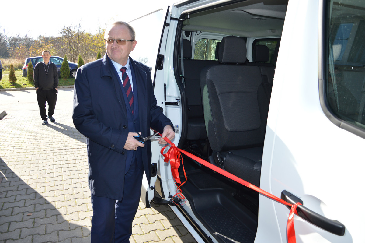 Dnia 08.11.2022 r. nastąpiło oficjalne przekazanie 9 osobowego samochodu Renault Trafic, przystosowanego do przewozu niepełnosprawnych mieszkańców Domu Pomocy Społecznej w Gnojnie. Auto zostało dofinansowane z programu PFRON "Wyrównanie różnic między regionami III" w kwocie 98.397,00 zł , pozostałą kwotę 89.558,00 zł ze środków własnych przekazał Powiat Buski.