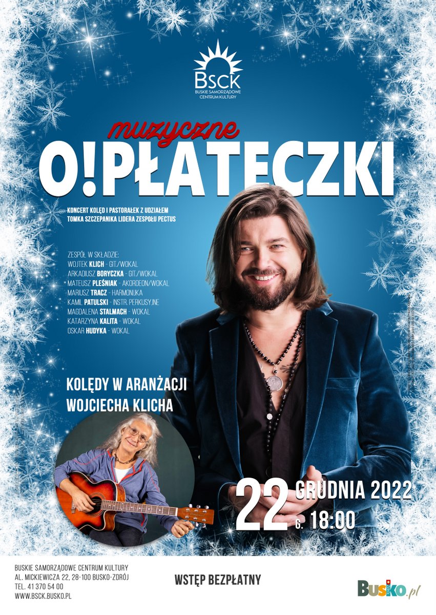Czas Świąt Bożego Narodzenia to okazja do wspólnego kolędowania! Buskie Samorządowe Centrum Kultury serdecznie zaprasza na "Muzyczne O!płateczki" - koncert kolęd i pastorałek w aranżacjach Wojciecha Klicha.