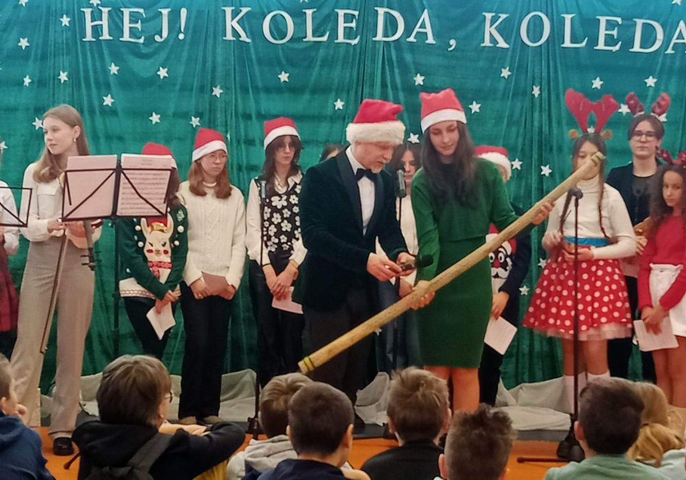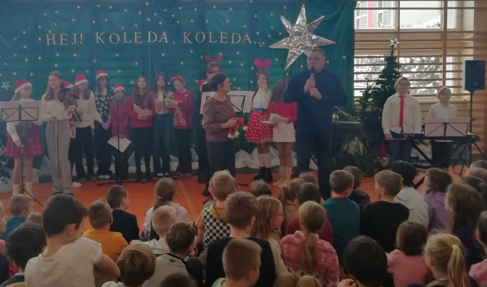 Artystów oraz całą społeczność szkolną przywitali pan dyrektor Dariusz Kumor oraz pani Dyrektor Szkoły Muzycznej Pierwszego Stopnia im. Krzysztofa Pendereckiego - Anna Sikora, którzy podkreślili jak dla nas wszystkich ważne są Święta Bożego Narodzenia. Udekorowana sala gimnastyczna, stroiki, świece przeniosły nas w magiczny, nastrojowy i niezapomniany - dzień z koncertem bożonarodzeniowym.