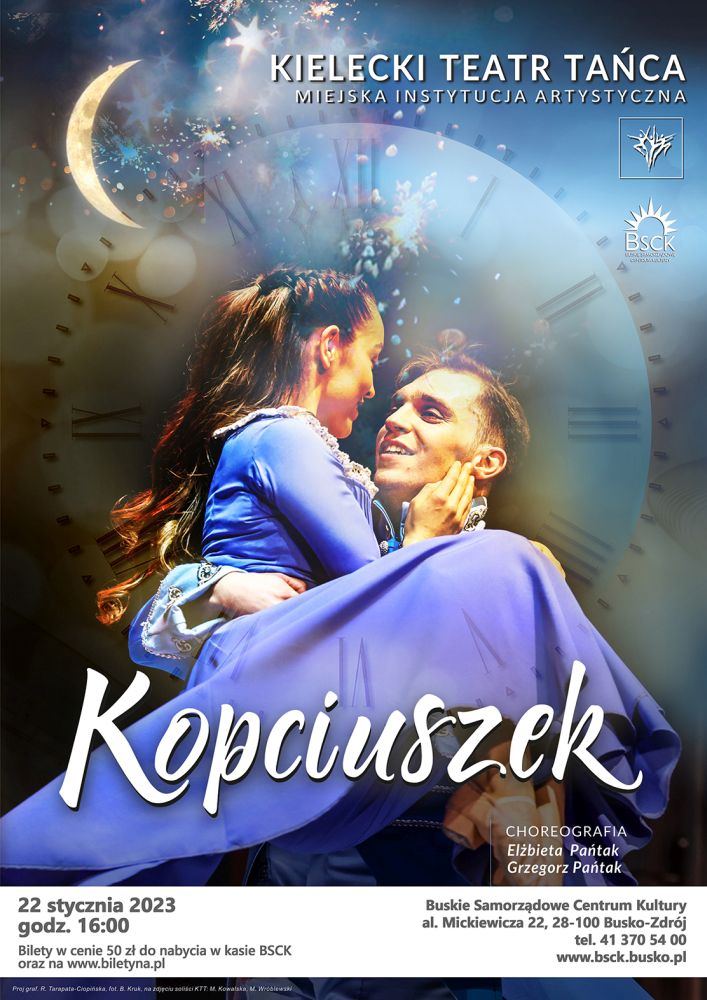 Zapraszamy 22 stycznia o godz. 16:00 do Buskiego Samorządowego Centrum Kultury na sceniczną adaptację baśni o Kopciuszku, w wykonaniu Kieleckiego Teatru Tańca.