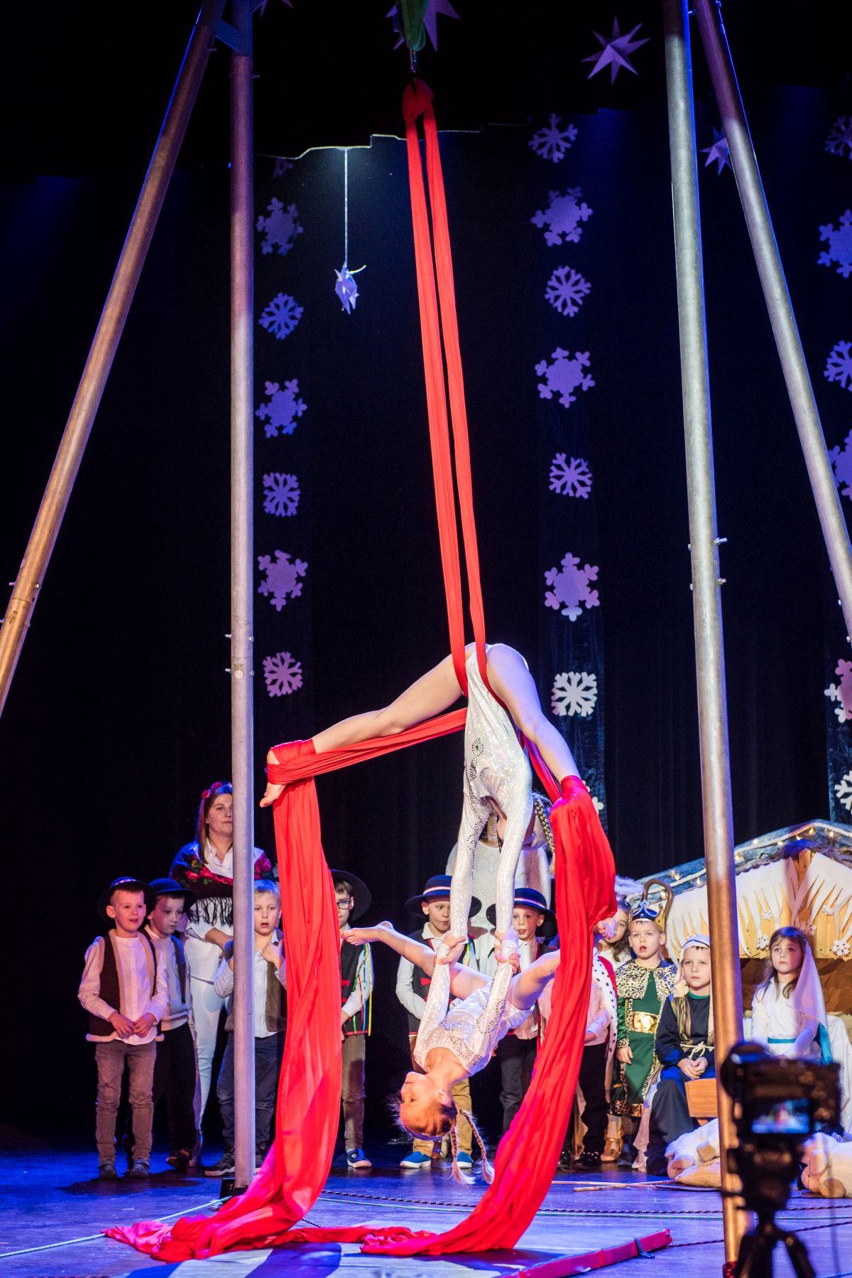 Absolutny debiut w słonecznym programie artystycznym w przestrzeni powietrznej zaprezentowała Oliwia Janik, 5 latka słonecznego przedszkola, która wraz z siostrą Nikolą absolwentką tej placówki oświatowej wykonały taniec w powietrzu na szarfach.