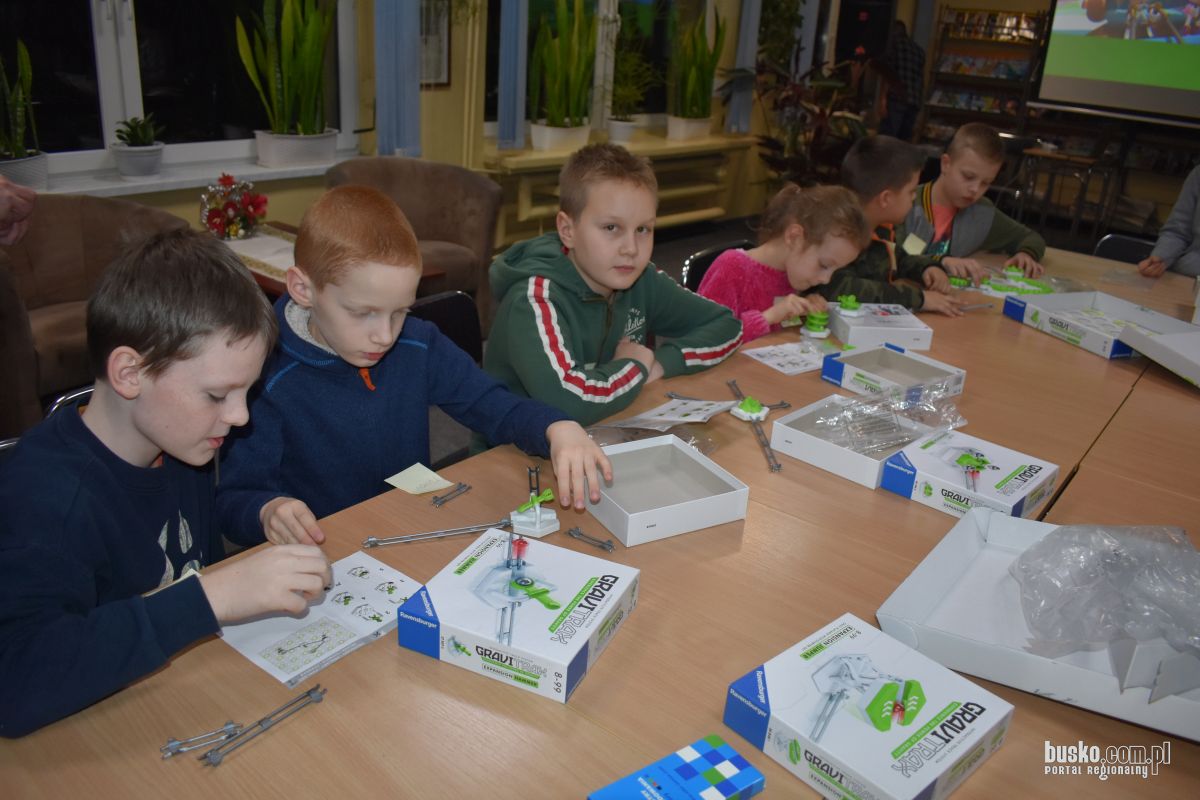 Podczas pierwszego spotkania w buskiej bibliotece, które odbyło się 3 stycznia młodzi uczestnicy warsztatów mogli zapoznać się z grami i zabawkami interaktywnymi.