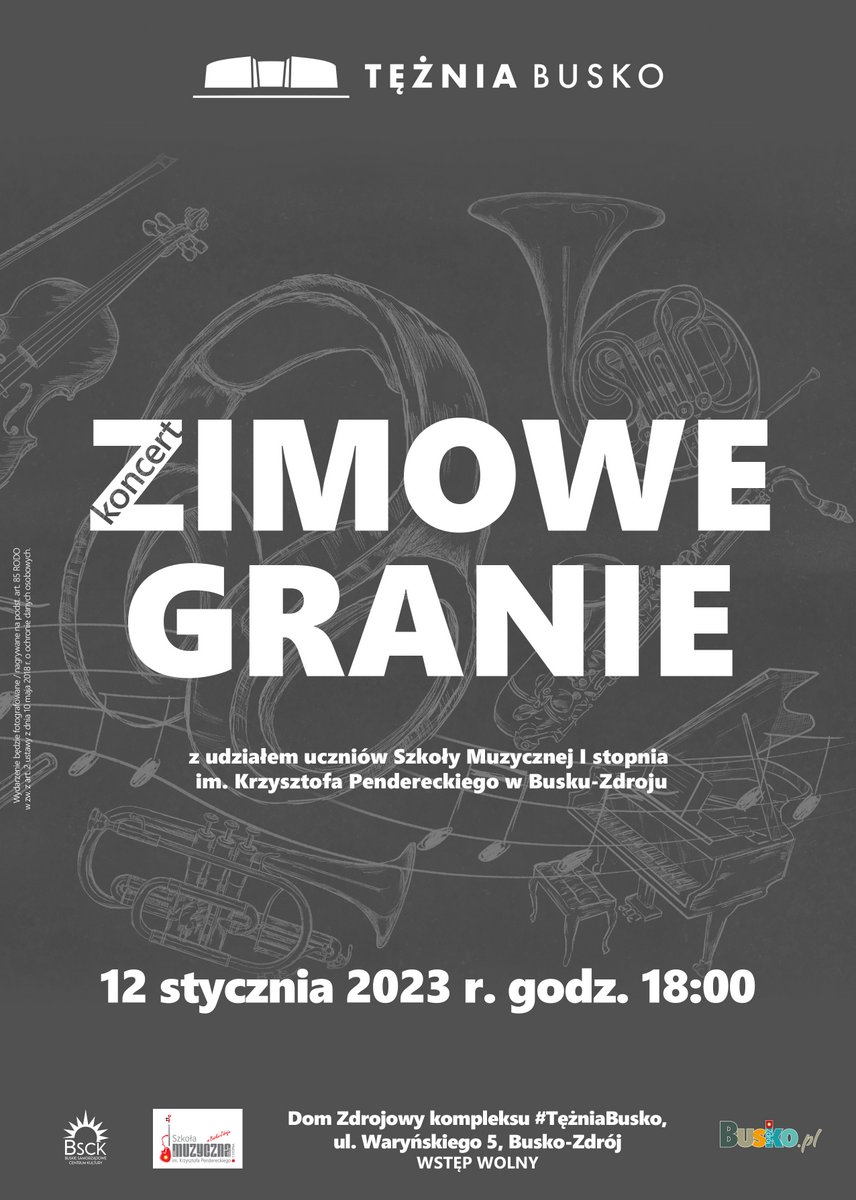 Zimowe Granie już 12 stycznia! Zapraszamy na koncert z udziałem uczniów Szkoły Muzycznej I stopnia im. Krzysztofa Pendereckiego w Busku-Zdroju. Wstęp wolny!