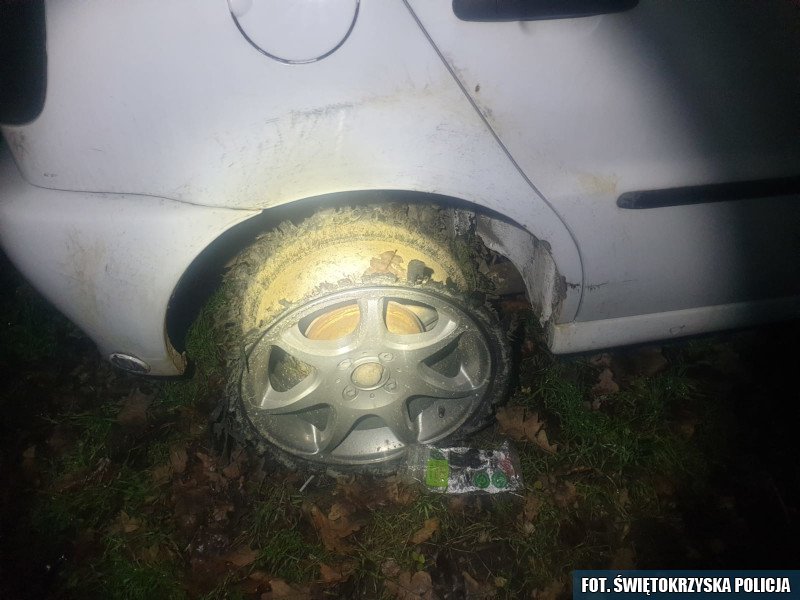 Dwóch mężczyzn z powiatu pińczowskiego ujęło na gorącym uczynku nietrzeźwego 27-latka, który prowadził samochód z kompletnie zniszczonymi dwiema oponami. Jak się okazało, samochód był kradziony - poinformowała w poniedziałek świętokrzyska policja.