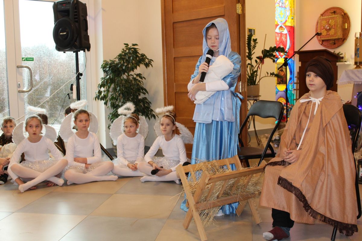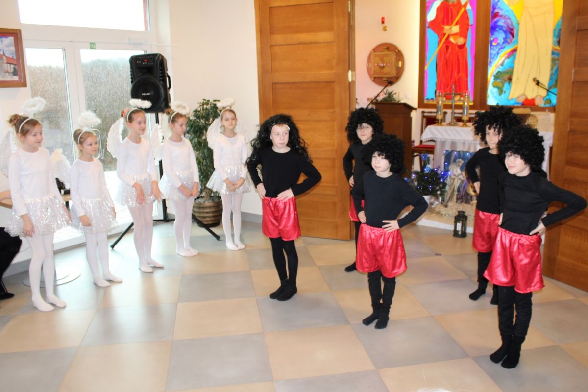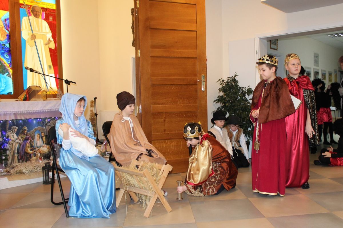 Panie nauczycielki: Alicja Zdziarska, Marcelina Płonka, Anna Wilk oraz Magdalena Lechowska-Brych wpadły na znakomity pomysł, aby oprócz tradycyjnych ról Matki Boskiej, Świętego Józefa, pasterzy i królewskich mędrców utworzyć grupkę żywiołowych diabełków, którzy namową i groźbą zniechęcą mieszkańców Betlejem do przyjęcia w gościnę brzemienną Maryję z Józefem.