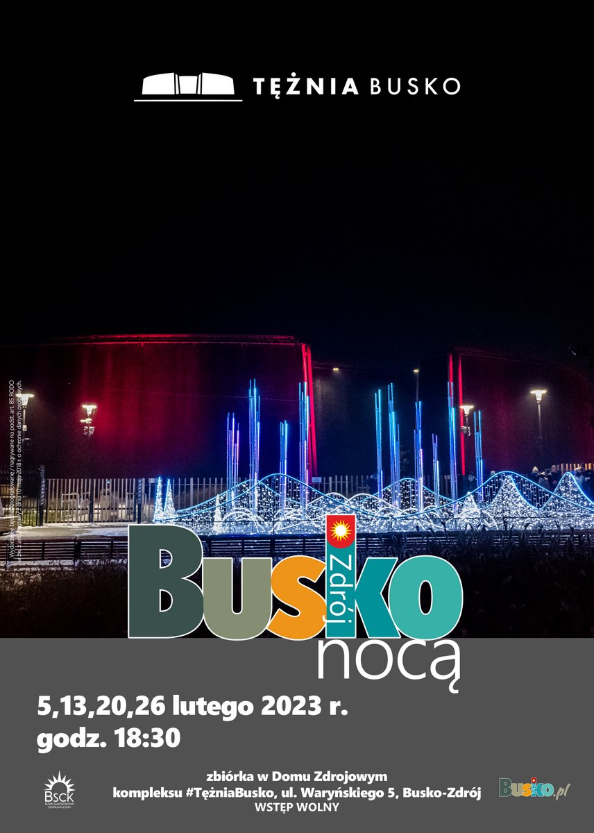 Serdecznie zapraszamy do udziału w spacerach "Busko Nocą"! W dniach 20 i 26 lutego o godz. 18:30 spotykamy się na terenie kompleksu #TężniaBusko przy ul. Waryńskiego 5.