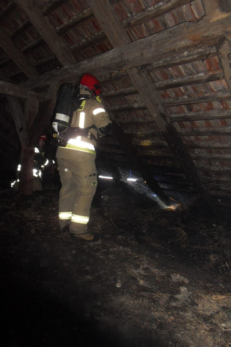 Do pożaru doszło na strychu drewnianego niezamieszkałego budynku jednorodzinnego na którym składowana była słoma. Po ugaszeniu pożaru rozebrano nadpaloną więźbę dachową. Na szczęście w pożarze nikt nie ucierpiał. Na miejscu zdarzenia obecne było również pogotowie i policja.