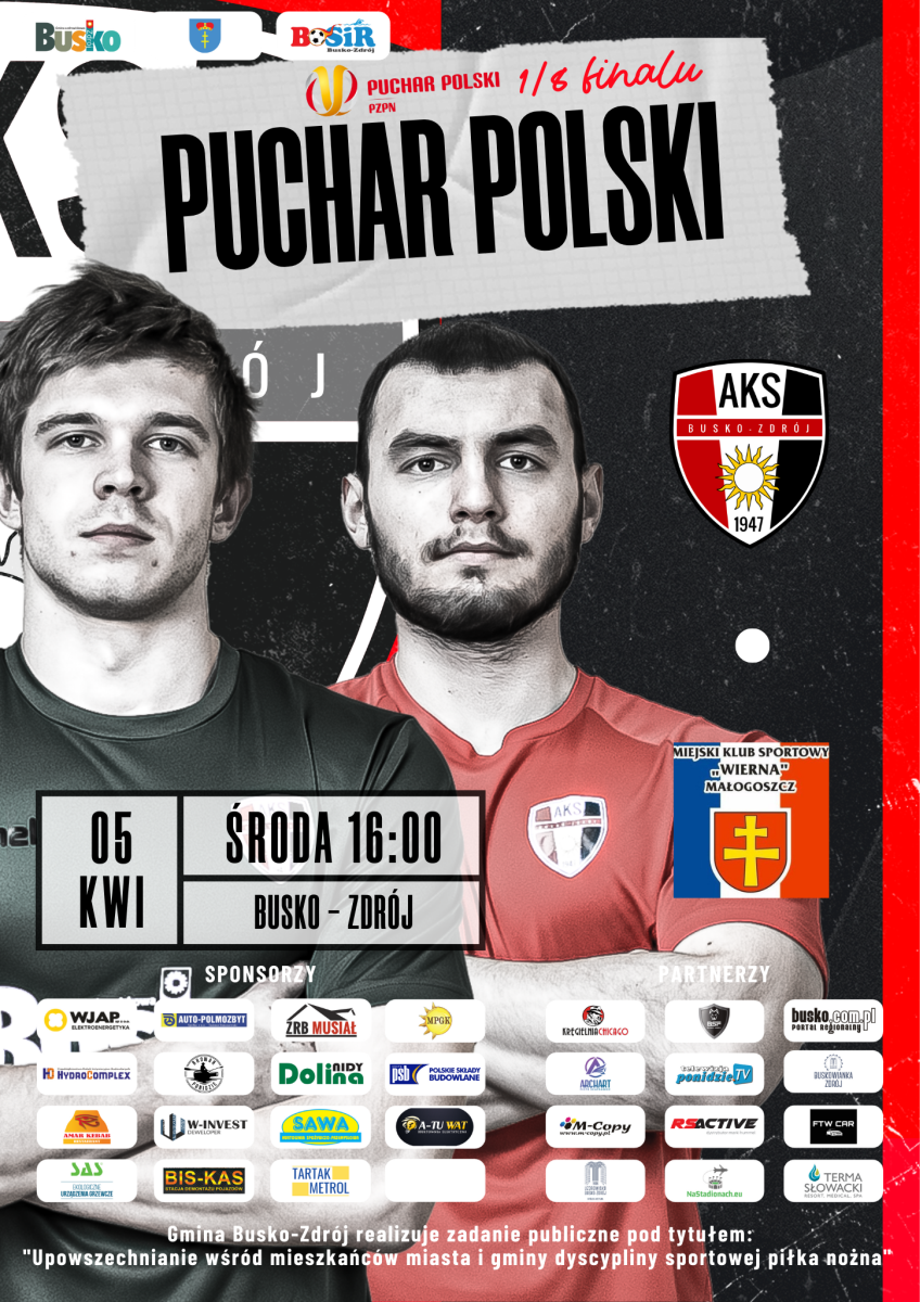 W środę, 5 kwietnia o godz. 16:00 zapraszamy na mecz w ramach 1/8 finału Pucharu Polski okręgu świętokrzyskiego. AKS 1947 Busko-Zdrój na swoim boisku podejmie drużynę WIERNA Małogoszcz .