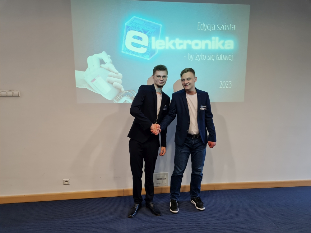 Uczniowie Zespołu Szkół Techniczno-Informatycznych - Filip Świla z klasy 4n oraz Daniel Pawelec z klasy 3n zostali laureatami i otrzymali wyróżnienie I stopnia w ogólnopolskim konkursie 'Elektronika- by żyło się łatwiej', organizowanym przez Wydział Automatyki, Elektroniki i Informatyki Politechniki Śląskiej wraz z partnerami – firmami Siemens Polska oraz KAMAMI.