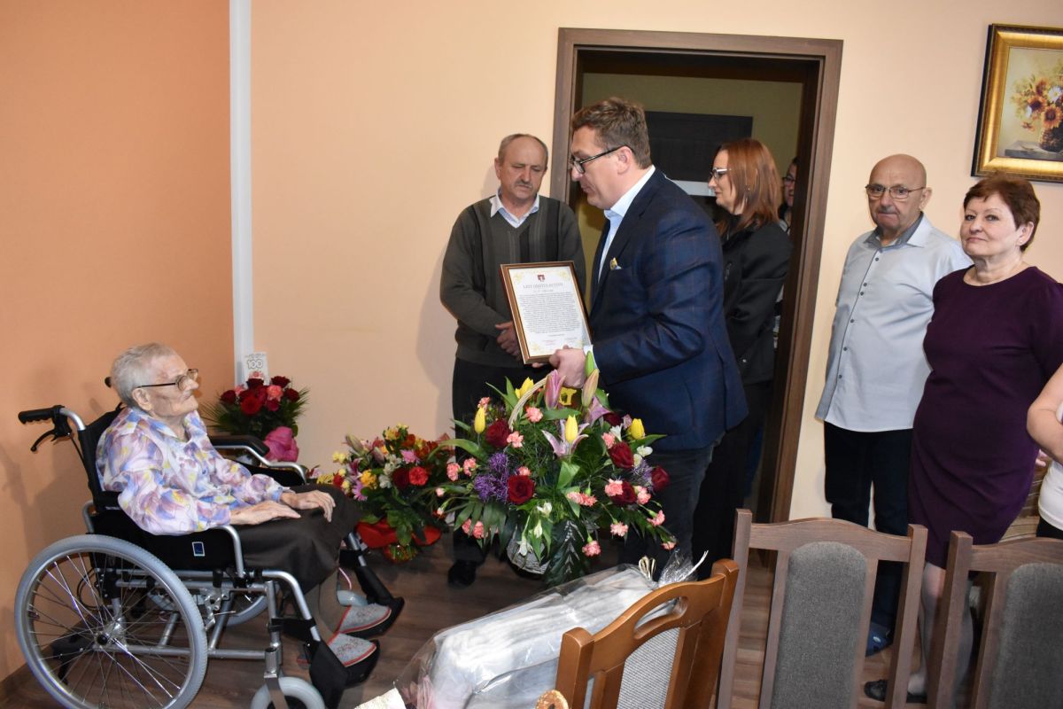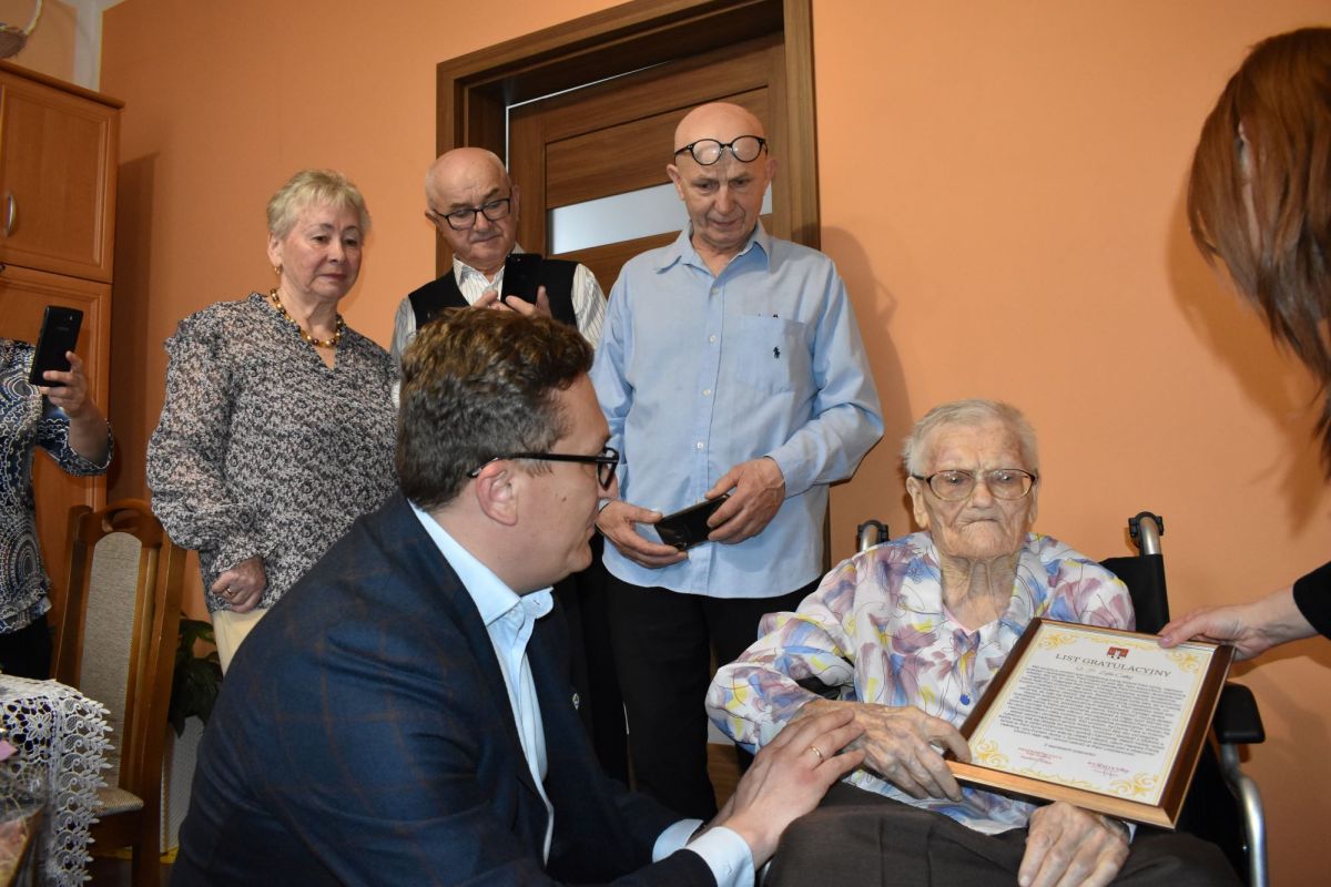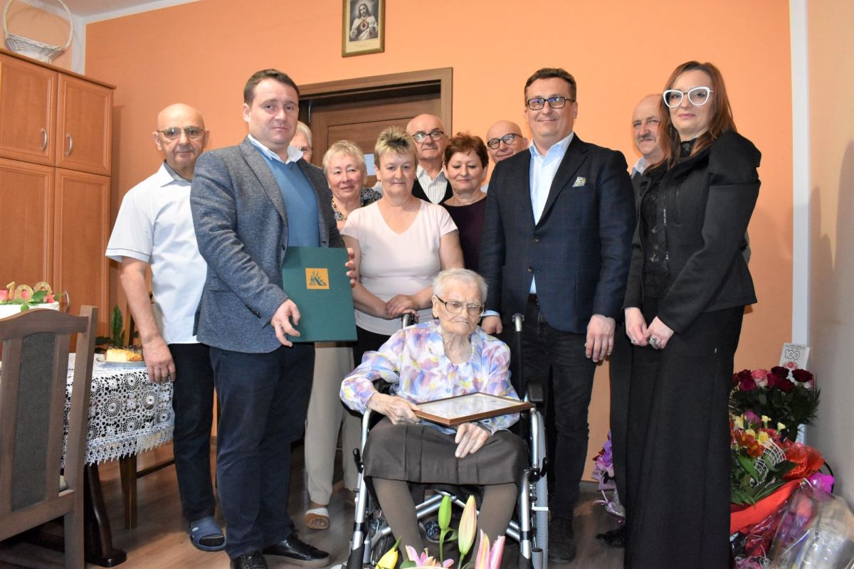 W dniu 17 kwietnia 2023 r. Burmistrz Miasta i Gminy w Nowym Korczynie Pawe³ Zagaja wraz z kierownikiem Urzêdu Stanu Cywilnego Ma³gorzat± Kaszowicz-Gzyl odwiedzili Pani± Zofiê Cabaj z ¯ukowic, która obchodzi³a swoje 100 urodziny.
