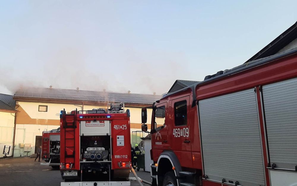 "Pożar udało się szybko opanować. Natomiast dogaszanie może potrwać jeszcze wiele godzin. Nasze działania polegają obecnie na wywożeniu materiału z hali i przelewaniu go wodą" - przekazał dyżurny komendy wojewódzkiej PSP w Kielcach.