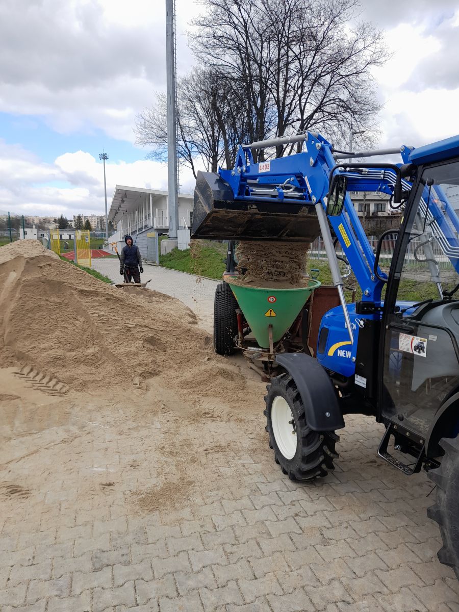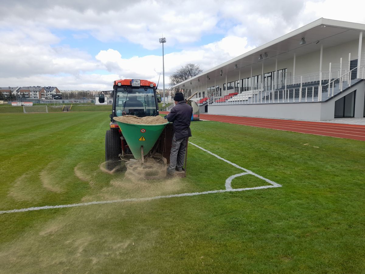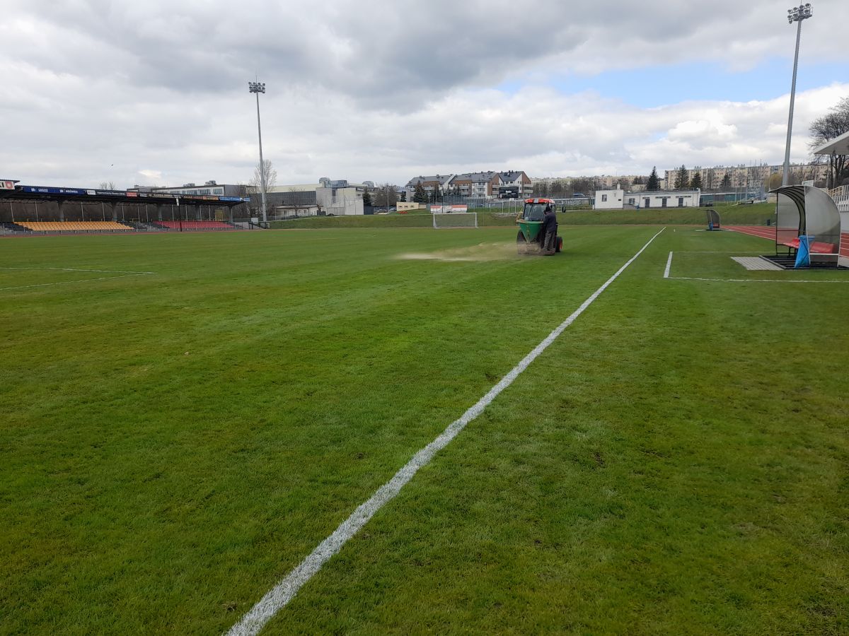 Na stadionie miejskim przy ulicy Kusocińskiego w Busku-Zdroju, przeprowadzono wiosenne prace pielęgnacyjne polegające na aeracji, piaskowaniu i szczotkowaniu murawy.