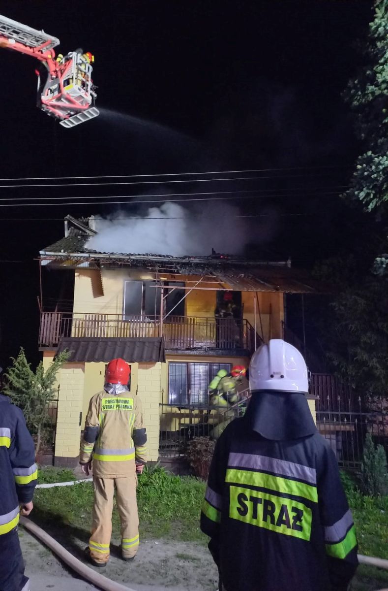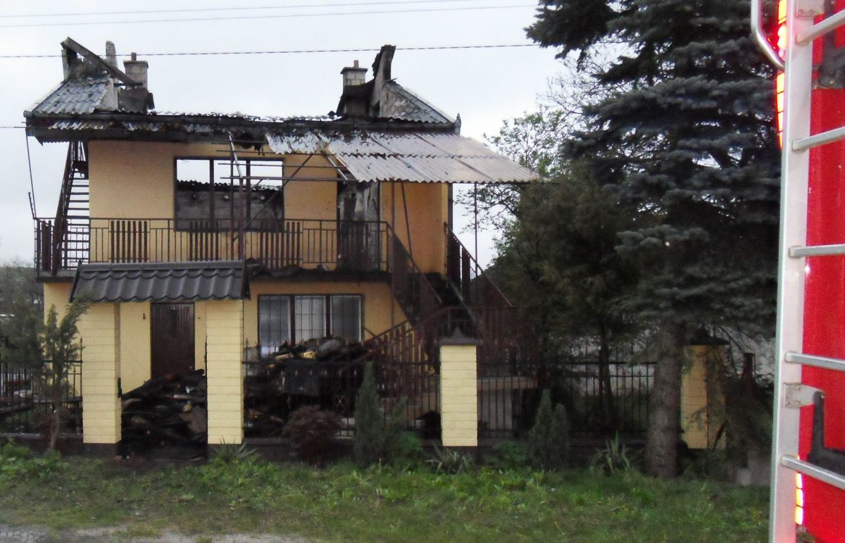 Przybyła na miejsce straż pożarna ustaliła, że pożarem objęte jest piętro i niezamieszkałe poddasze domu jednorodzinnego dwukondygnacyjnego, krytego eternitem. W budynku nie przebywały żadne osoby, budynek nie był zamieszkiwany od kilku miesięcy.