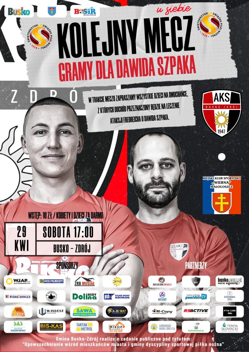 W najbliższą sobotę, 29 kwietnia w ramach 26 kolejki Hummel 4 Ligi zapraszamy na mecz AKS 1947 Busko-Zdrój z Wierna Małogoszcz.