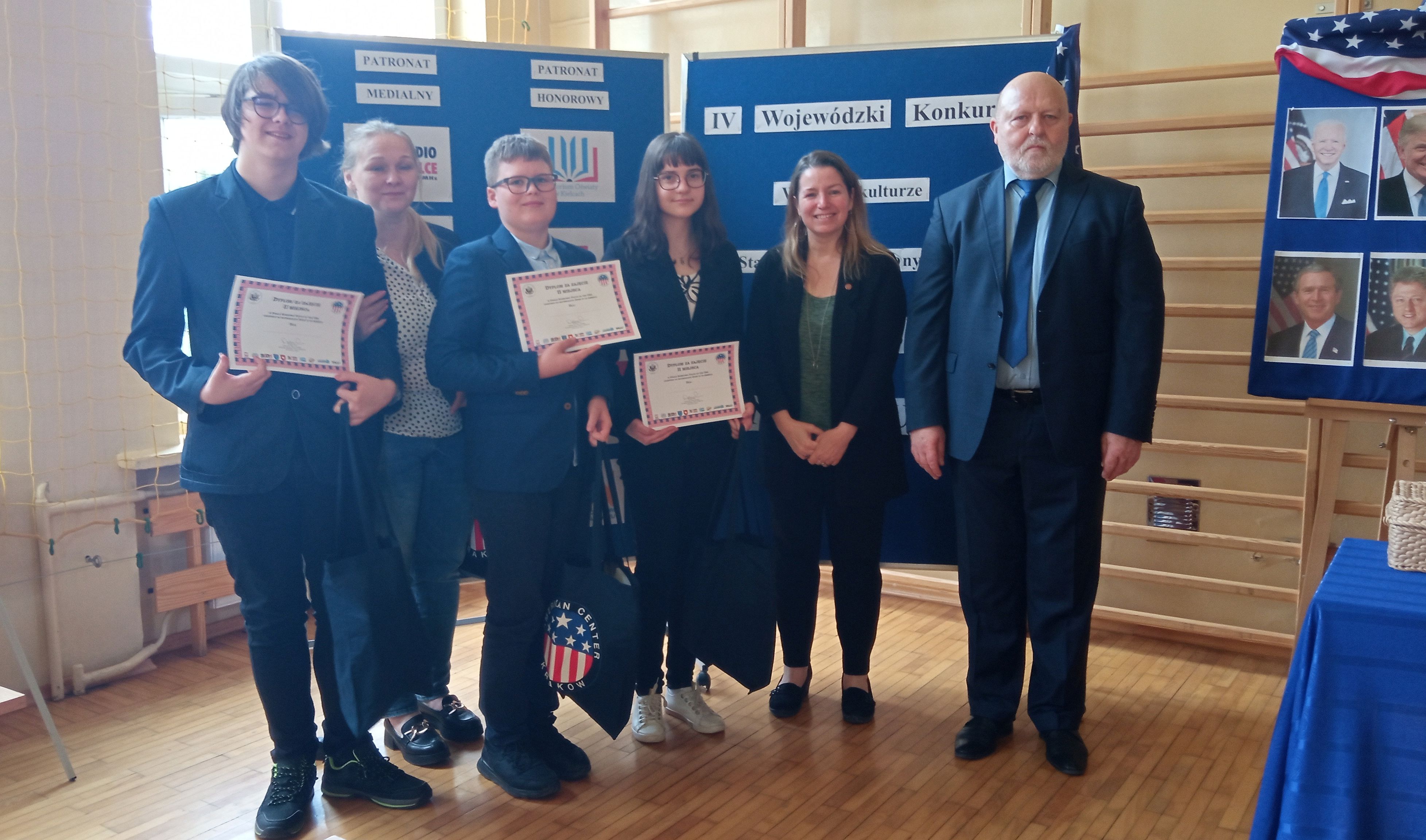 Wszyscy laureaci otrzymali podpisane przez Panią Konsul certyfikaty potwierdzające zwycięstwo oraz nagrody rzeczowe, których fundatorem są: Konsulat Generalny Stanów Zjednoczonych w Krakowie oraz Rada Rodziców Publicznej Szkoły Podstawowej im. Jana Pawła II w Zbludowicach.
