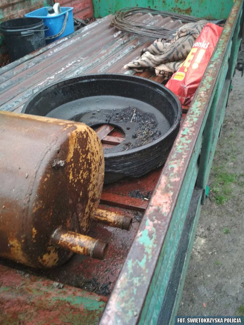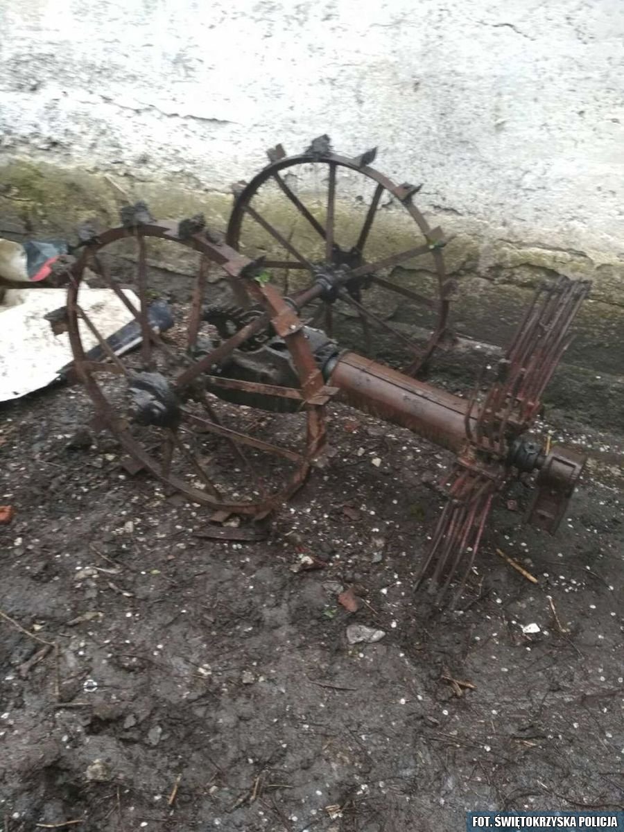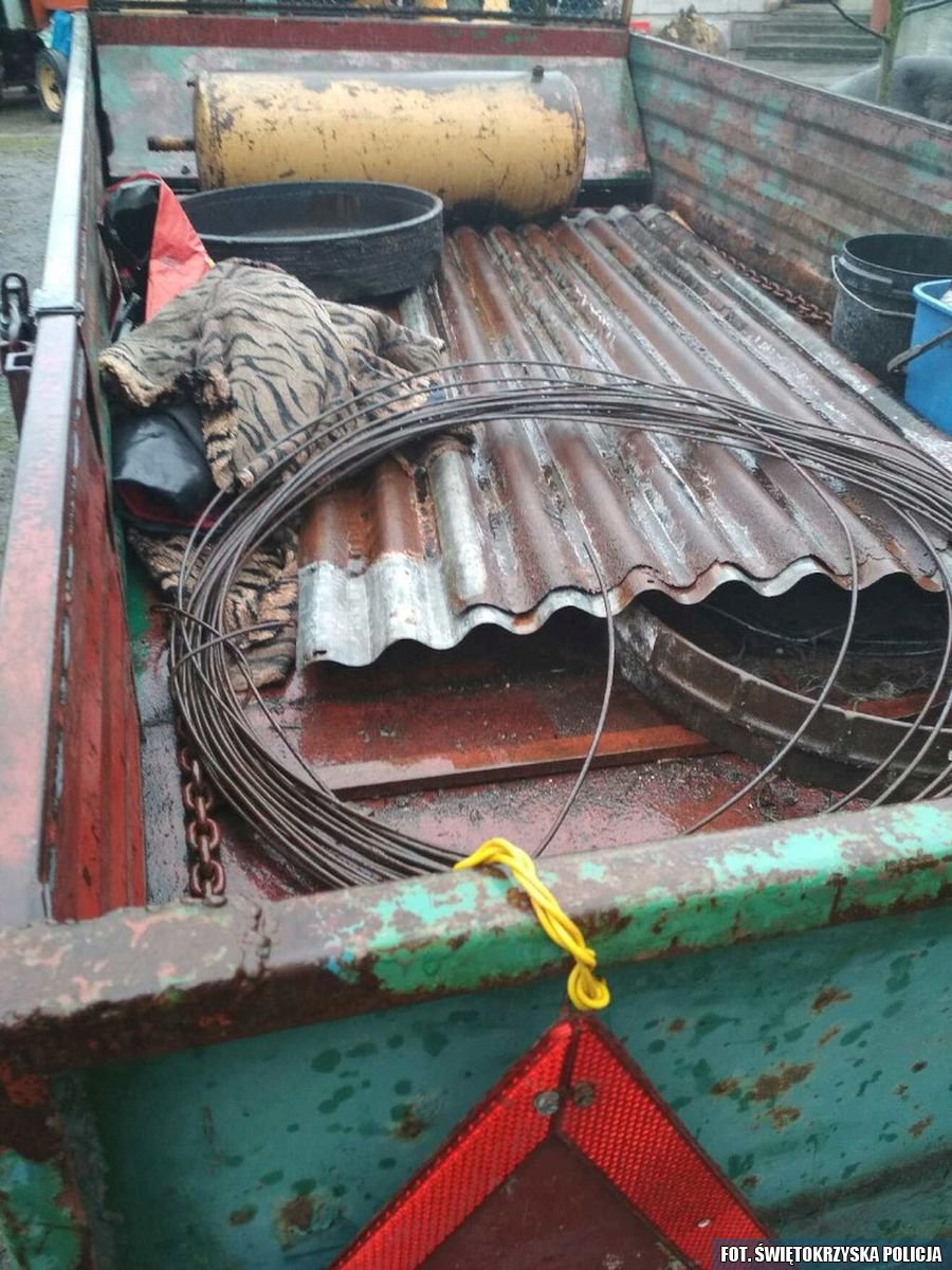 Przy wjeździe do Pińczowa patrol napotkał opisywany ciągnik z przyczepą, na której znajdowały się elementy metalowe, w tym te pochodzące z kradzieży. 55-letni kierowca został zatrzymany. Ba terenie jego posesji znaleziono kolejne skradzione maszyny. Dzisiaj mężczyzna przyznał, że od początku kwietnia kilkukrotnie był na podwórku sąsiadów. Ponieważ uważał, że zgromadzony sprzęt nie jest użytkowany, postanowił go sprzedać w punkcie skupu złomu.