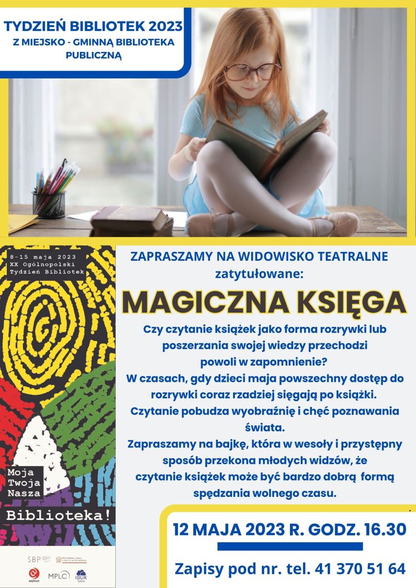 Zapraszamy na widowisko teatralne zatytułowane 'Magiczna księga'. Czy czytanie książek jako forma rozrywki lub poszerzania swojej wiedzy przechodzi powoli w zapomnienie?
