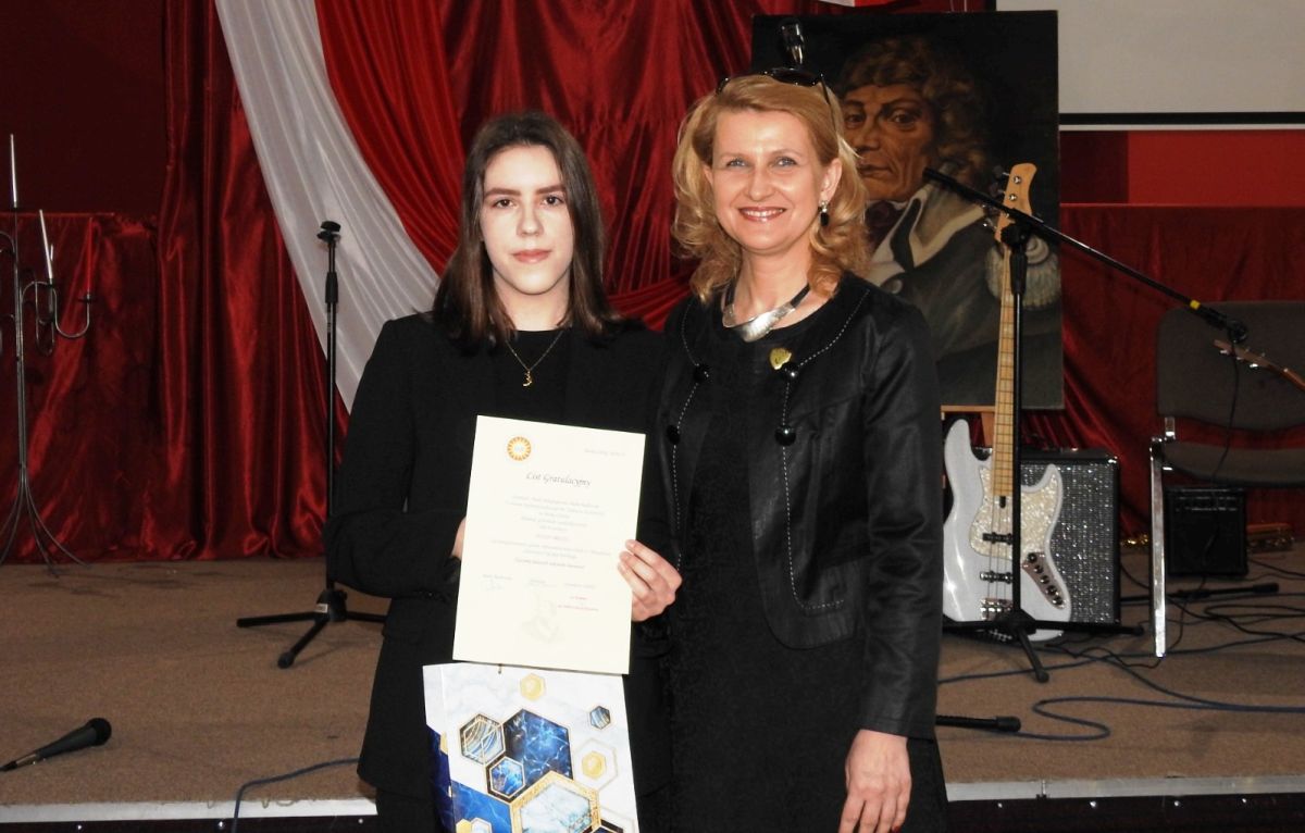 Podczas uroczystego zakończenia roku szkolnego dla klas czwartych I Liceum Ogólnokształcącego im. T. Kościuszki w Busku-Zdroju dnia 28.04.2023 r. uczennica otrzymała gratulacje i podziękowania od Dyrekcji Szkoły i Rady Rodziców.