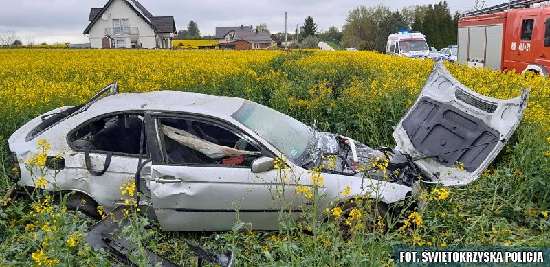 Tuż przed godziną 17.00 w niedzielę, 7 maja służby ratunkowe otrzymały zgłoszenie o zdarzeniu drogowym w gminie Działoszyce. Na miejscu okazało się, że BMW prowadzone przez 21-letniego mieszkańca gminy Michałów wypadło z drogi i kilkukrotnie dachowało na polu uprawnym.