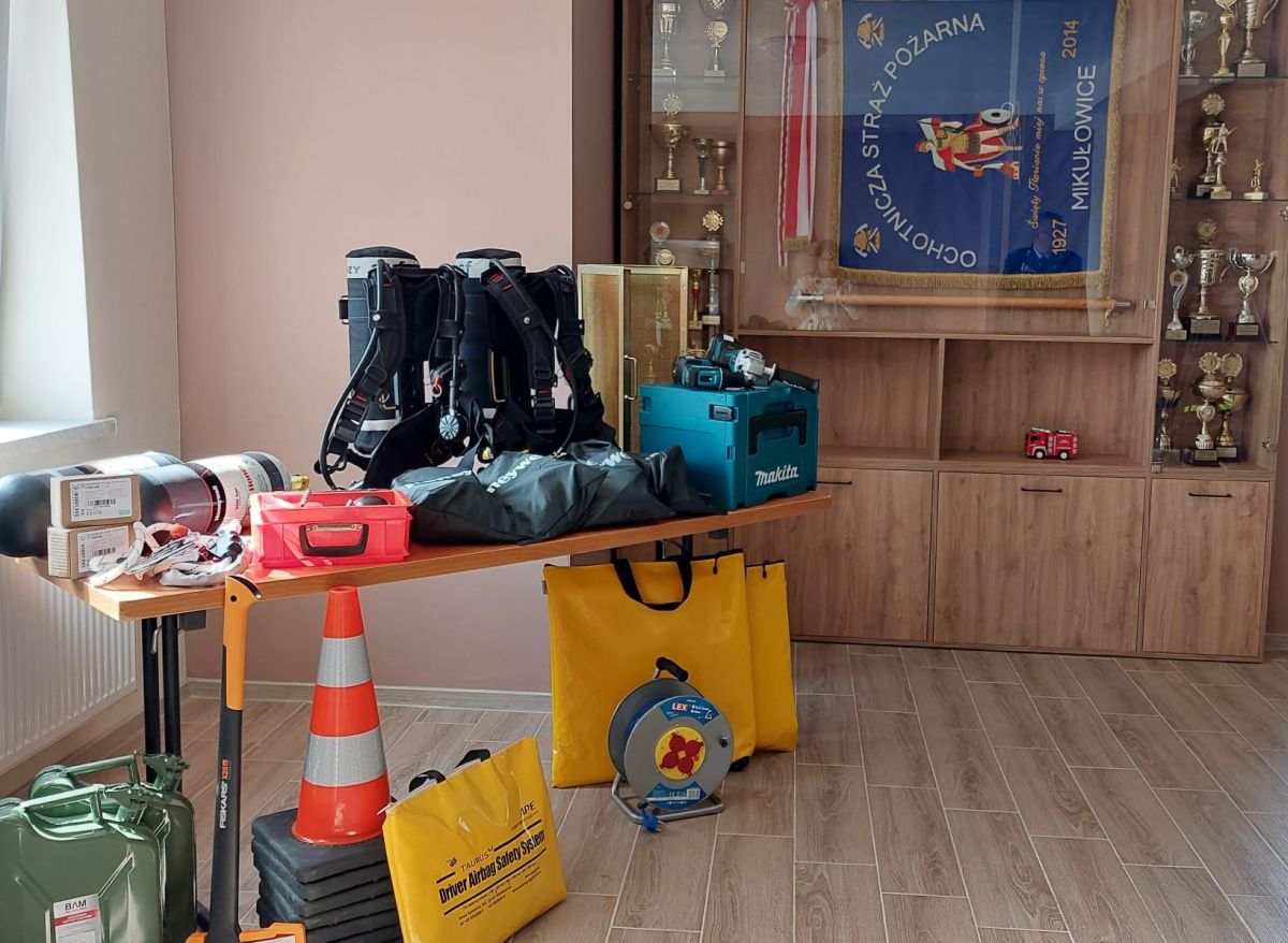Ochotnicza Straż Pożarna w Mikułowicach otrzymała nowy sprzęt i wyposażenie pożarnicze służące do ratowania życia i mienia w ramach projektu pn. "W trosce o bezpieczeństwo - zakup aparatów ochrony układu oddechowego oraz specjalistycznego sprzętu ratowniczo-gaśniczego dla Ochotniczej Straży Pożarnej w Mikułowicach".