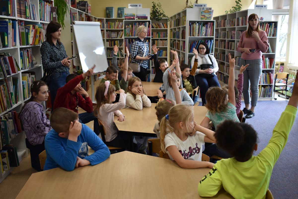 Rebusy, zagadki, zabawy z książką sprawiły, że czas w bibliotece został spędzony w miłej atmosferze.