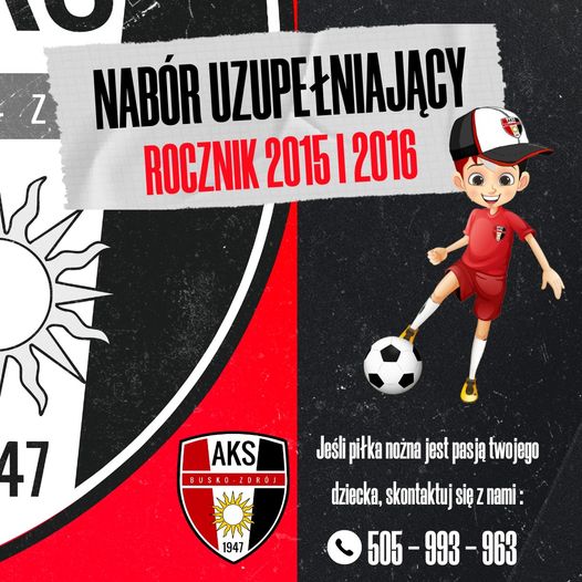 Trwa nabór uzupełniający dla roczników 2015-2016. Treningi odbywają się 3 razy w tygodniu pod okiem wykwalifikowanego trenera.