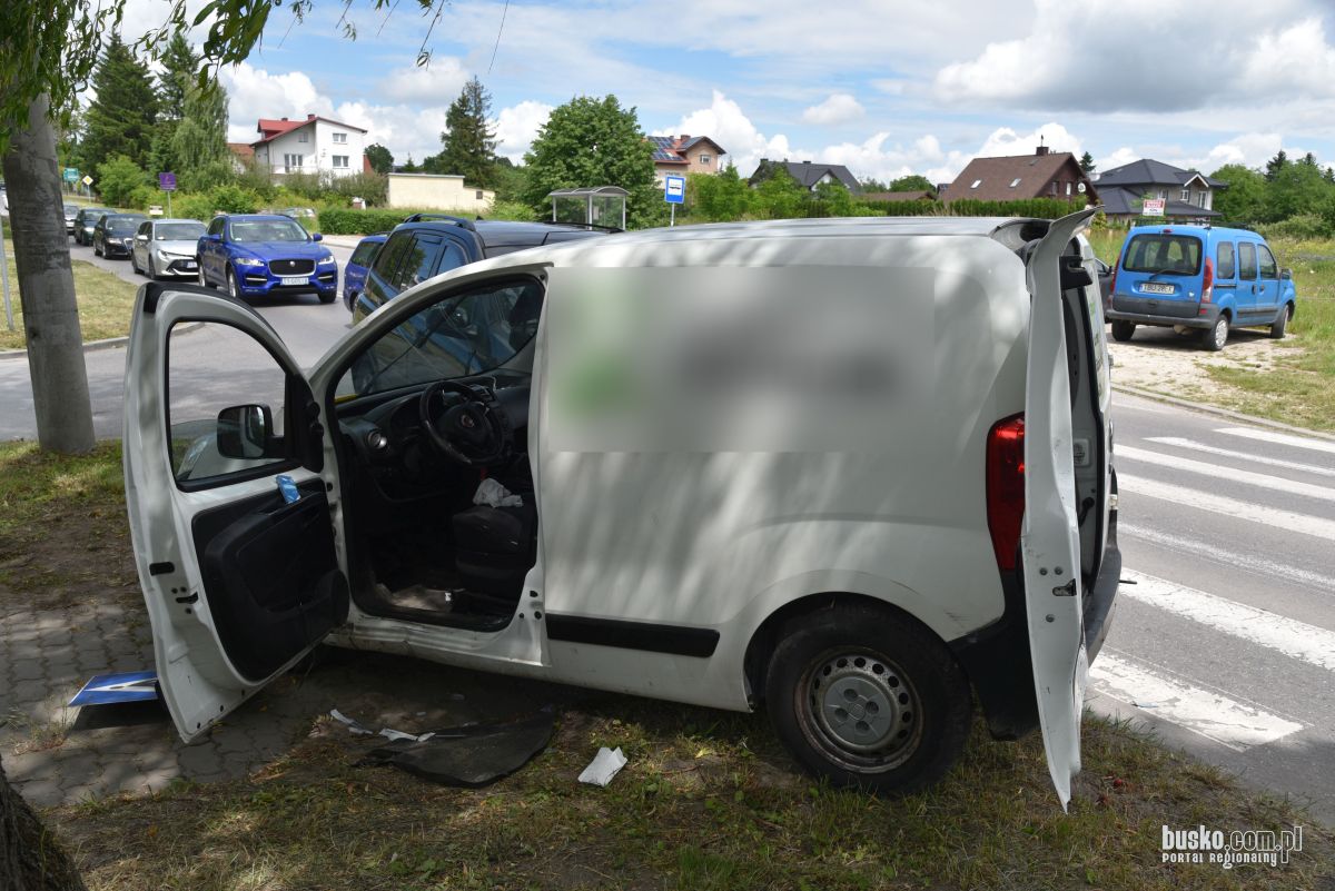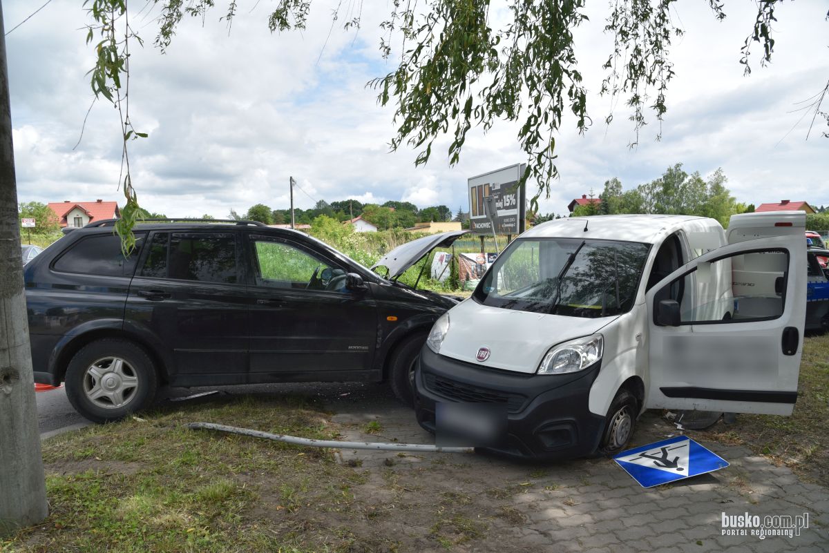 Dzisiaj około godziny 9:30 na ulicy Grotta w Busku-Zdroju miał miejsce groźny wypadek. Kierujący Fiatem Fiorino podczas próby skrętu w ulicę Słoneczną podjął niebezpieczny manewr zawracania, co doprowadziło do zderzenia z nadjeżdżającym pojazdem marki Ssang Yong.
