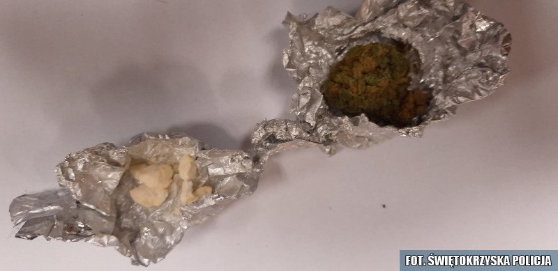 Kryminalni podczas patrolu jednej z miejscowości w pobliżu Pińczowa, zwrócili uwagę na mężczyznę, który na widok nieoznakowanego radiowozu zaczął się ukrywać w pobliskich krzakach. Kryjówka nie okazała się jednak skuteczna, bo policjanci nie stracili go z oczu nawet na moment. Krótko później stróże prawa poznali przyczyny niecodziennego zachowania 44-latka. Na trawie w jego pobliżu leżały dwa zawiniątka, a w nich około 3 gramów suszu roślinnego i 2 gramy białego proszku. Obie substancje zostały zidentyfikowane jako narkotyki. Pierwsza to marihuana, a proszek to amfetamina.