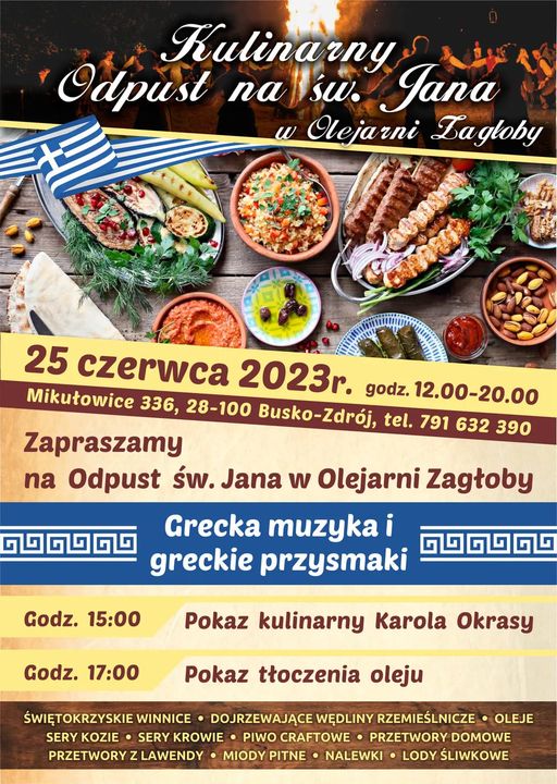W niedzielê, 25 czerwca 2023 roku, wszystkich mi³o¶ników kulinariów oraz niezapomnianych doznañ smakowych zapraszamy na wyj±tkowe wydarzenie - Kulinarny Odpust na ¦w. Jana. Impreza odbêdzie siê w malowniczej Olejarni Zag³oby, po³o¿onej w urokliwych Miku³owicach.