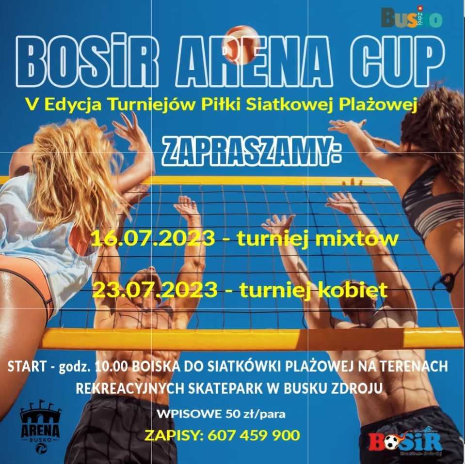 BOSiR Arena Cup to coroczne wydarzenie, które organizowane jest na boiskach do siatkówki plażowej w Busku-Zdroju. W dniach 16 i 23 lipca zapraszamy na V edycję Turnieju Piłki Siatkowej Plażowej.