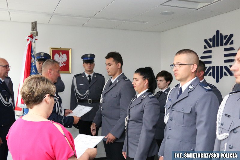 Dziś pińczowscy policjanci uczestniczyli w uroczystości zorganizowanej z okazji obchodów Święta Policji. Podczas niej mundurowi z rąk Pierwszego Zastępcy Komendanta Wojewódzkiego Policji w Kielcach insp. Jarosława Tokarczyka odebrali akty mianowania na wyższe stopnie policyjne.