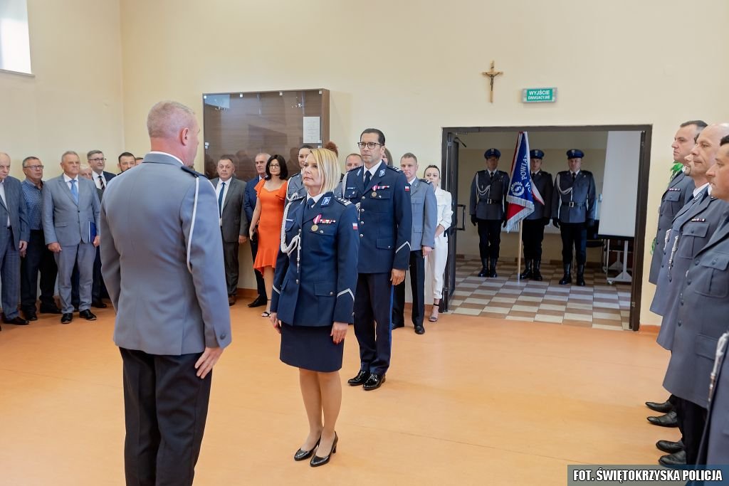 O godzinie 12:00 w świetlicy buskiej komendy odbyła się uroczystość związana z wręczeniem nominacji na wyższe stopnie policyjne. Ceremonię rozpoczęto od meldunku o gotowości do rozpoczęcia uroczystej zbiórki przez dowódcę uroczystości - Zastępcę Komendanta Wojewódzkiego Policji w Kielcach, insp. dr Agatę Malasińską-Nagórną.