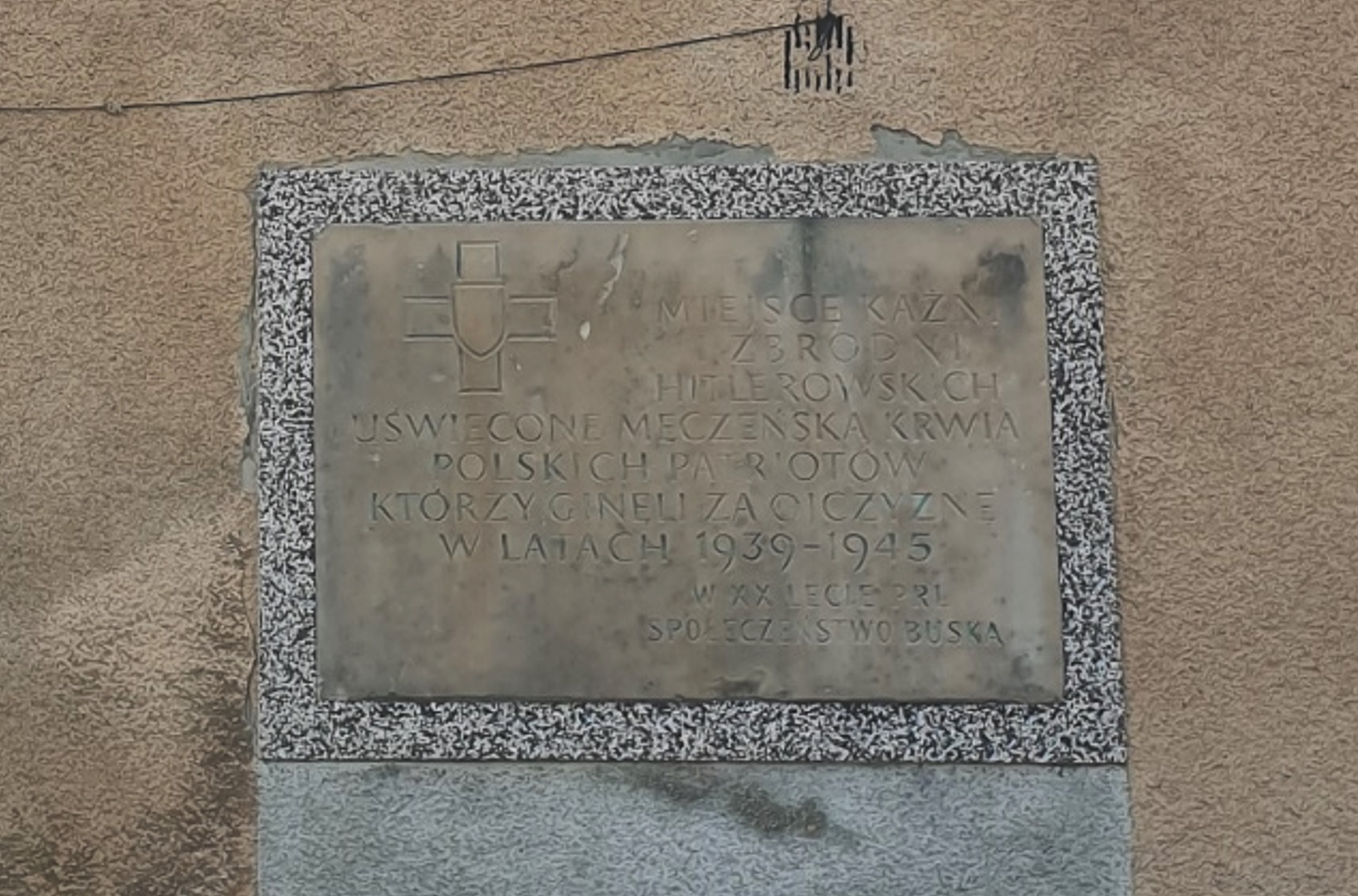 Tablica pamiątkowa na ścianie więzienia przy ul. Kościelnej w Busku (dzisiejsza Sądowa)