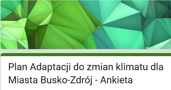 Urząd Miasta i Gminy Busko-Zdrój pragnie poinformować o przygotowaniu "Planu Adaptacji do zmian klimatu dla Miasta Busko-Zdrój" oraz serdecznie zaprasza do udziału w badaniu poprzez wypełnienie ankiety. Pozyskane opinie z terenu gminy będą miały kluczowe znaczenie w procesie wyboru odpowiednich działań, mających na celu przystosowanie naszego miasta do zmieniających się warunków klimatycznych.