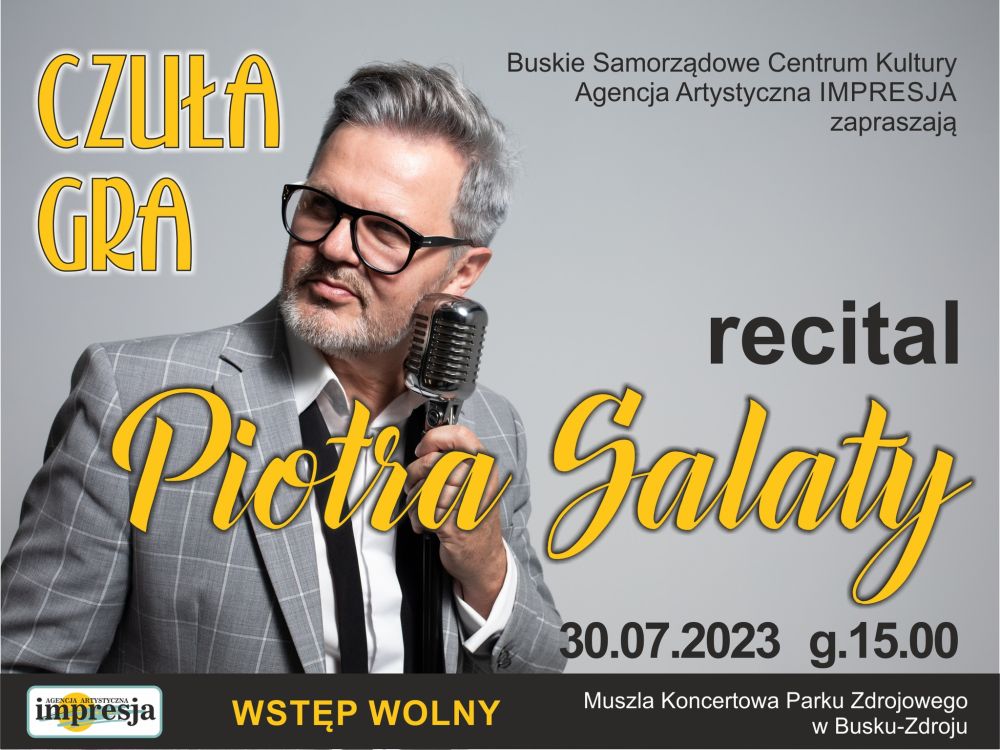Już w najbliższą niedzielę, 30 lipca, o godzinie 15:00, miłośników muzyki zapraszamy na niezwykły recital w muszli koncertowej Parku Zdrojowego w Busku-Zdroju. Gwiazdą wieczoru będzie Piotr Salata, utalentowany wokalista o wielkim sercu do muzyki rozrywkowej.